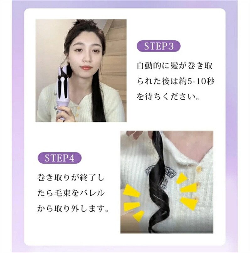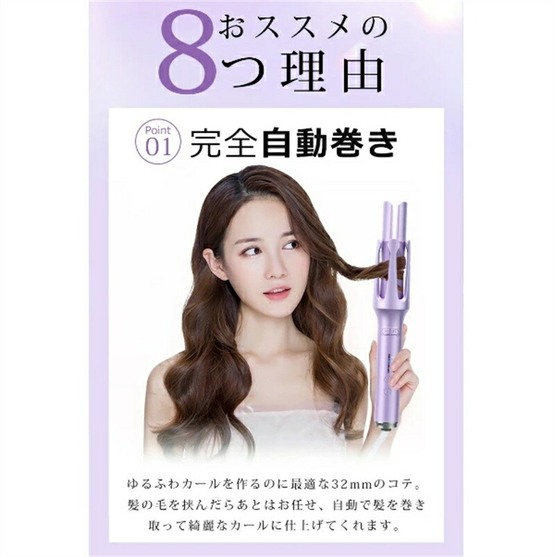 ヘアアイロン 自動巻き カールアイロン パープル ピンク グリーン
