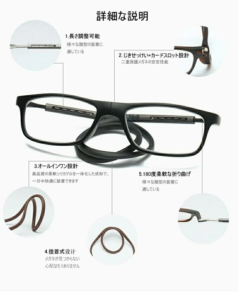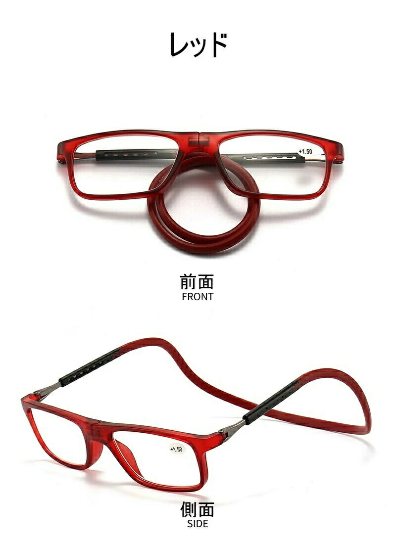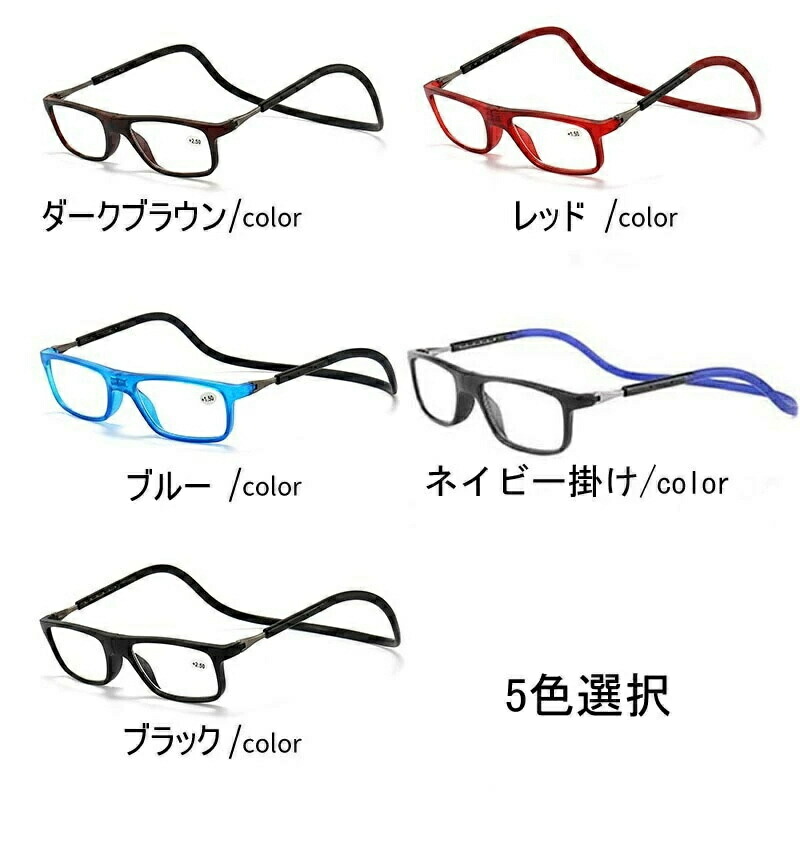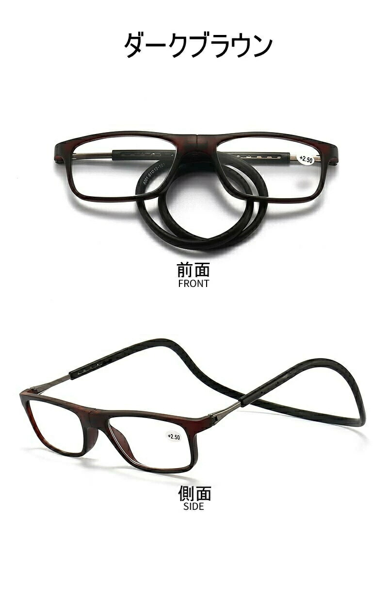 紛失防止老眼鏡 強力マグ スマート 首 ダークブラウン レッド ブルー ネイビー掛け ブラック +1.00 +1.50 +2.00 +2.50 +3.00 +3.50 +4.00