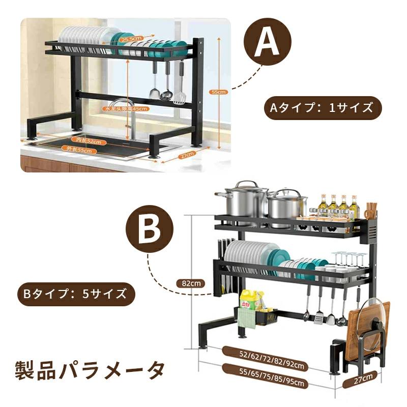 水切りラック シンク上 2段 水切りか キッチン用品 食器 調理器具 新登場! A 55cm B 55cm B 65cm B 75cm B 85cm B 95cm