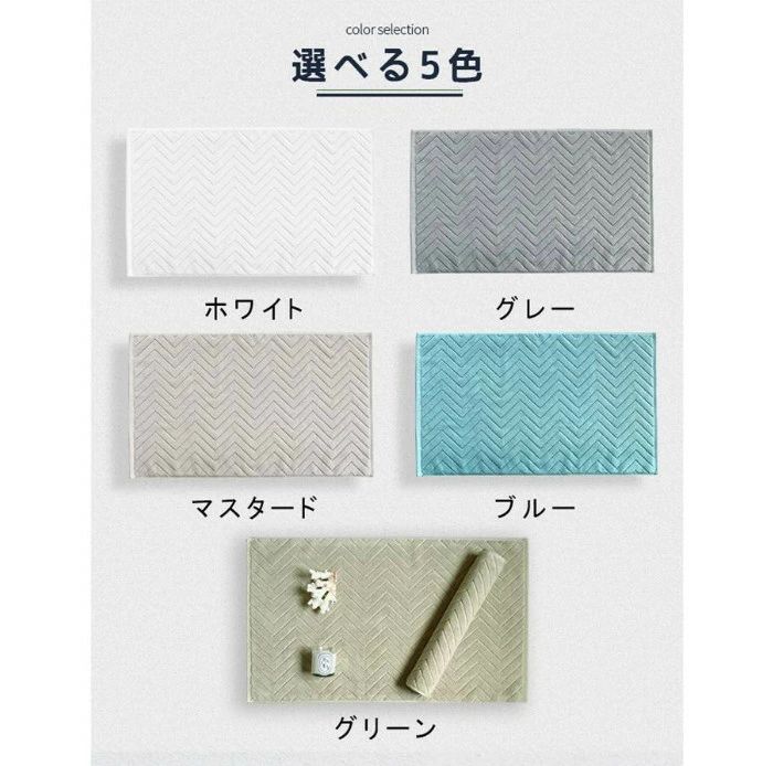 バスマット タオル地 速乾 5colo 日用品雑貨 文房具 手芸 新登場! ホワイト グレー マスタード ブルー グリーン