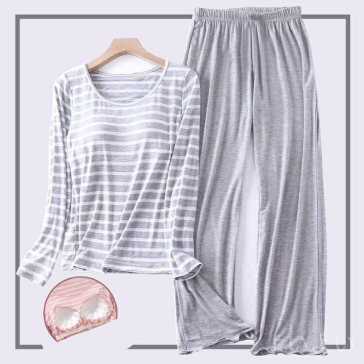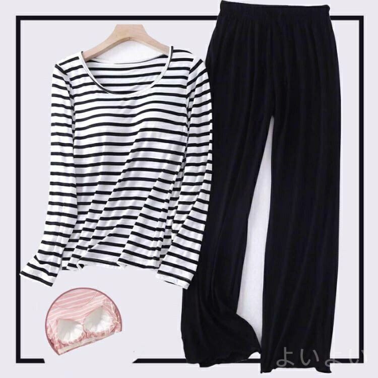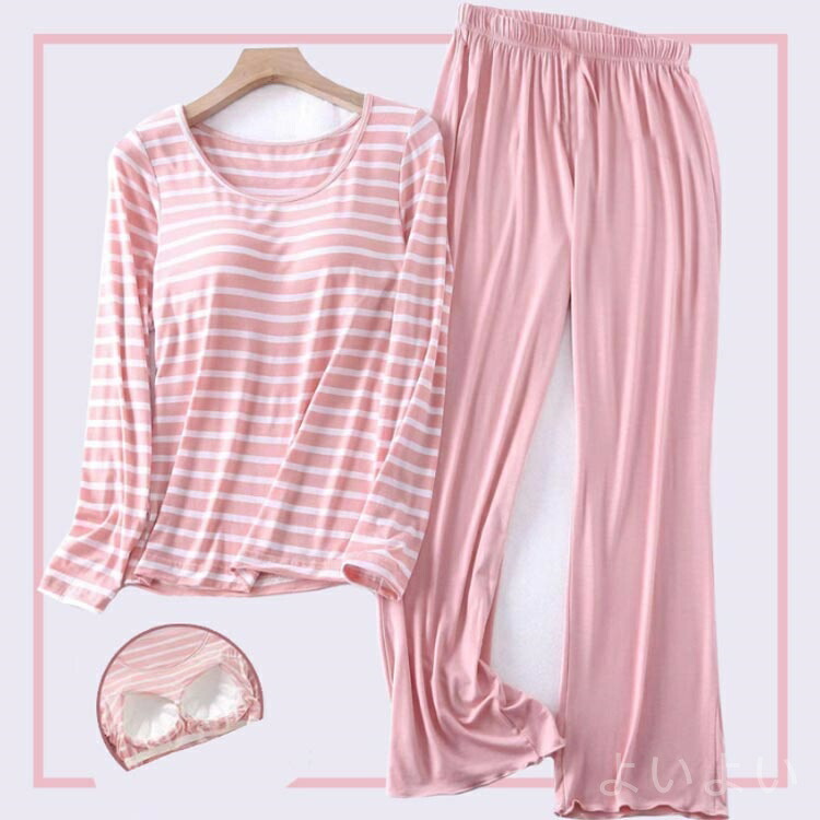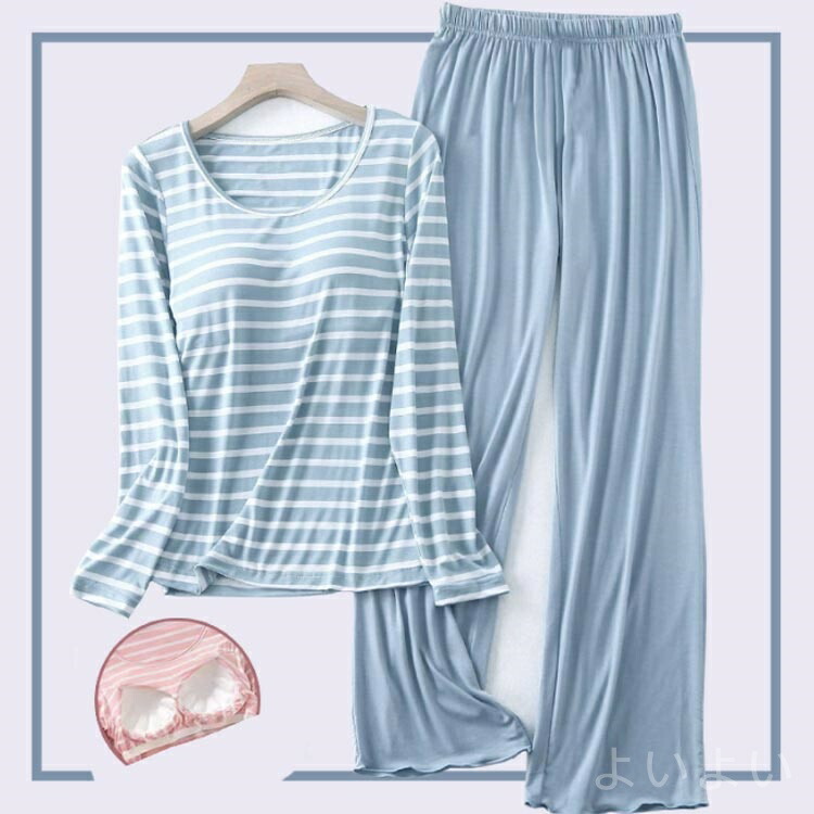 ブラ付き パッド付き セットアップ 寝 レディース ナイトウェア ルームウェア パジャマ 大人気! 2点セットピンク 2点セットブラック 2点セットグレー 2点セットブルー M L XL 2XL 3XL 4XL