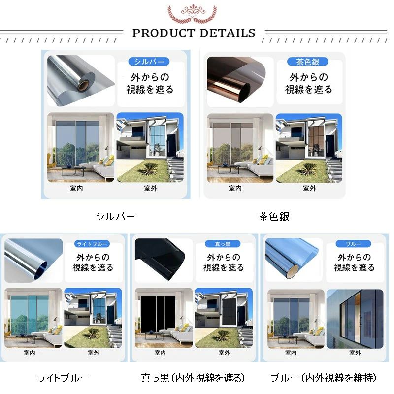 遮光シート 窓 目隠し 窓ガラスシート シルバー 茶色銀 ライトブルー 真っブラック(内外視線を遮る) ブルー(内外視線を維持) 30*100cm 40*100cm 50*100cm 60*100cm 70*100cm 80*100cm 90*100cm 100*100cm 110*100cm 120*100cm 152*100cm 90x300cm