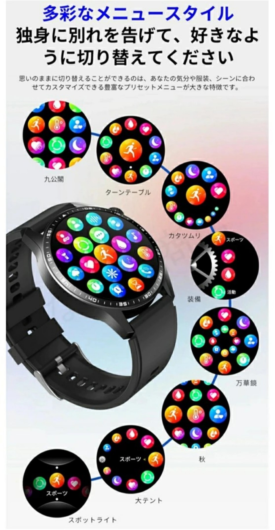 2.1インチのカラー スクリーンを搭載し、時間やメッセージなどの内容がよりり鮮明に表示され、自動輝度調整機能が付き、どんな場所でも見やすいスマートウォッチ。