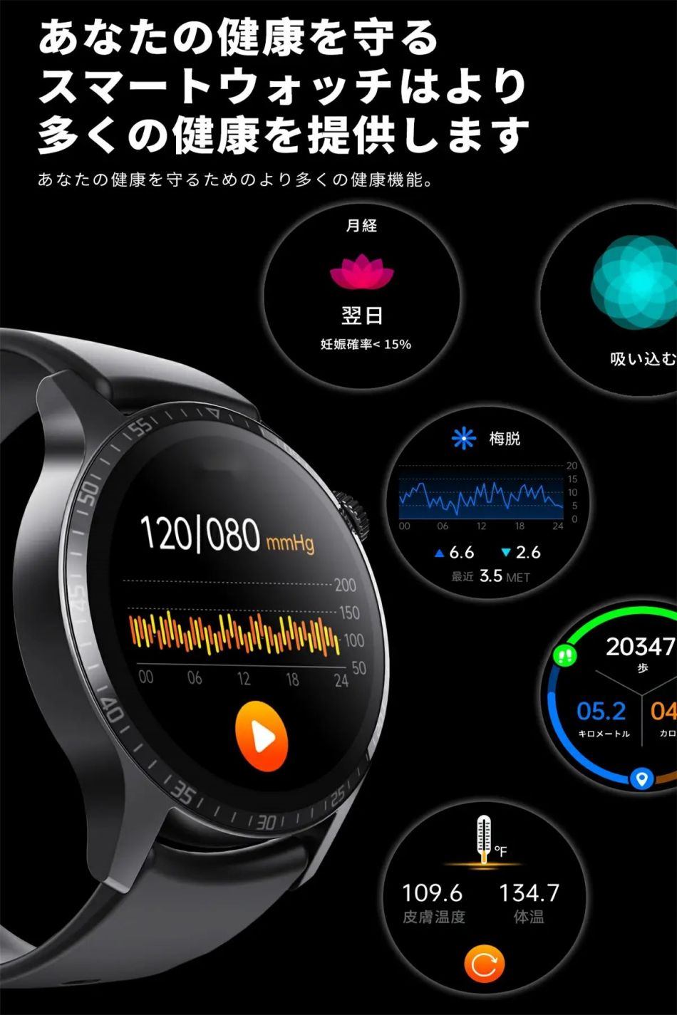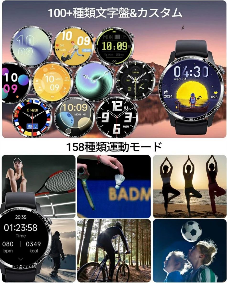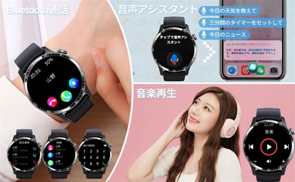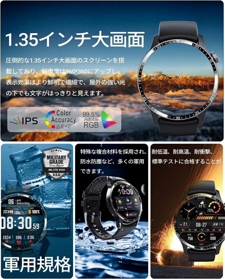 正規品保証 スマートウォッチ 日本製センサー 1.35インチ ブレスレット LINE Twitter SNS 防水 音楽制御 高精度 夏祭り プレゼント 誕生日 母の日 iPh 日本語対応