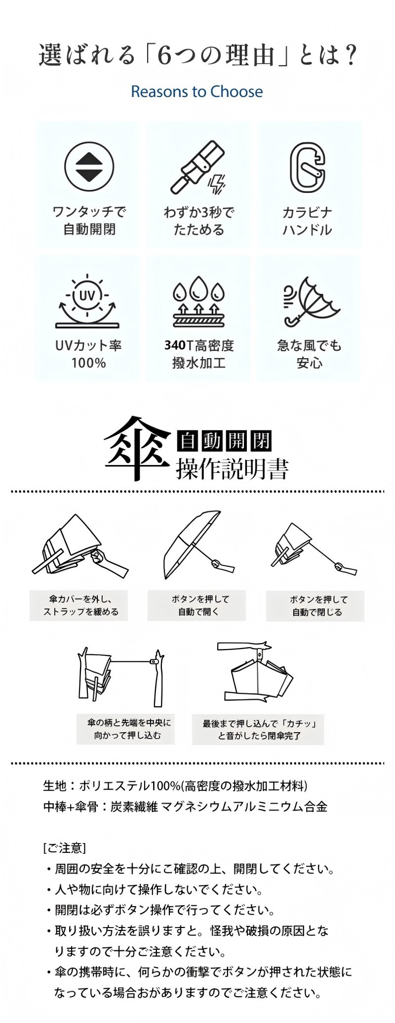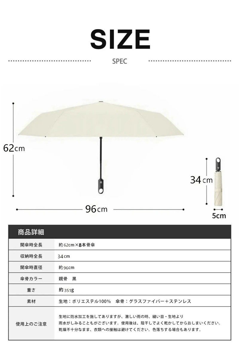 【ワンタッチ自動開閉&形状記憶】 片手で簡単に開閉できる日傘 自動開閉仕様。形状記憶構造で折り畳みもスムーズ、使いやすさ抜群。折りたたみ傘 形状記憶モデルとして注目の一品です。