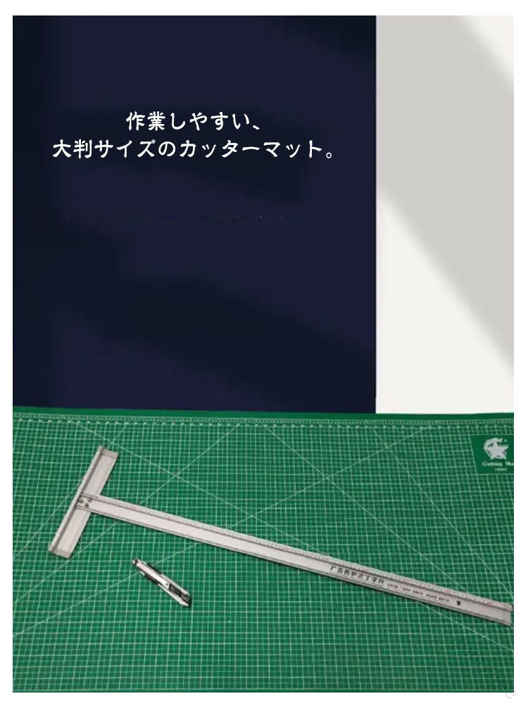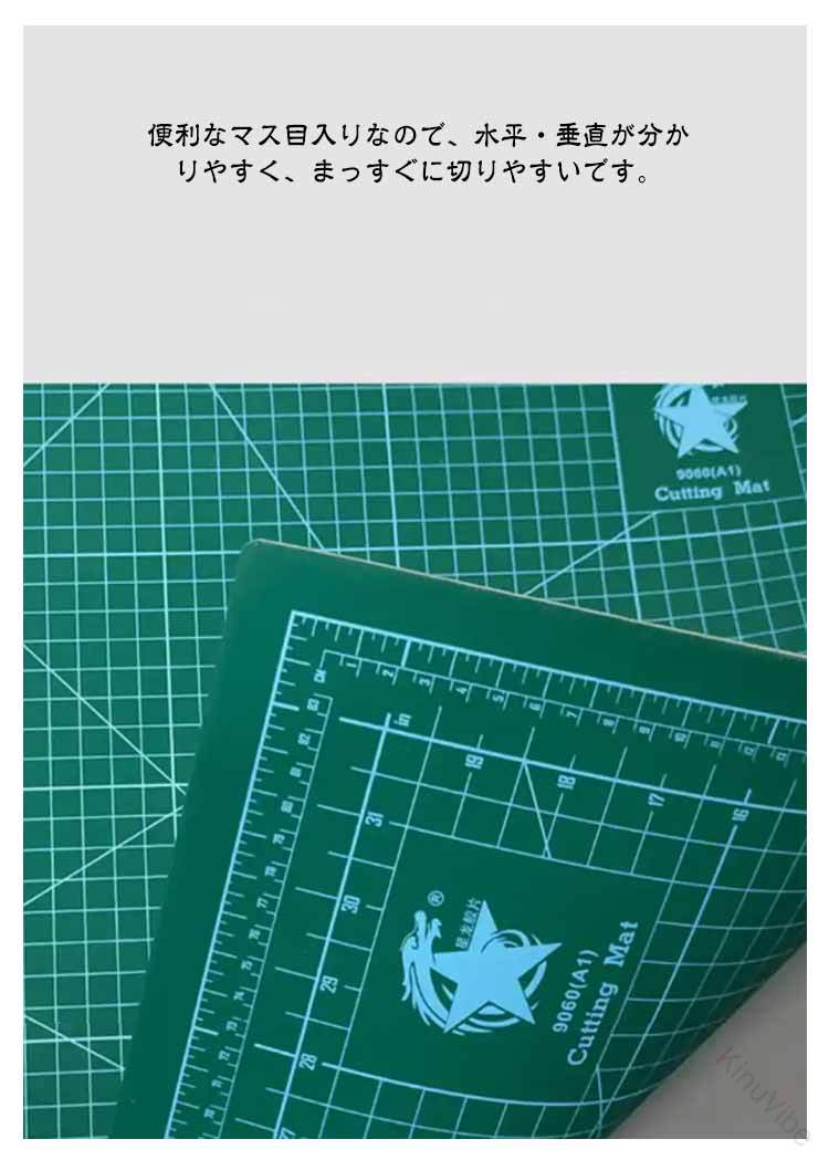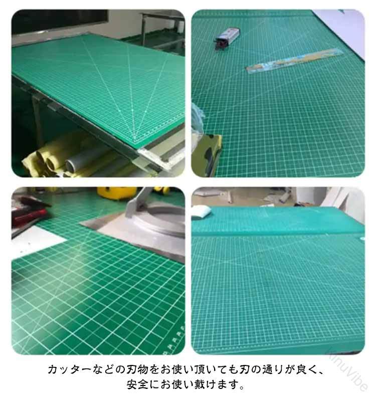 .カッティング マット 特大 60 × 120 cm は 両面 3 mm 厚 の 大判 サイズ で 洋裁 手芸 裁縫 型紙 切り出し 工作 や 作業台 に 最適 です。 高耐久 性 が あり 業務用 や 手作り 作業 に も 使える 緑 グリーン カラー の 作業マット で 事務用品 としても 活躍 します。。
