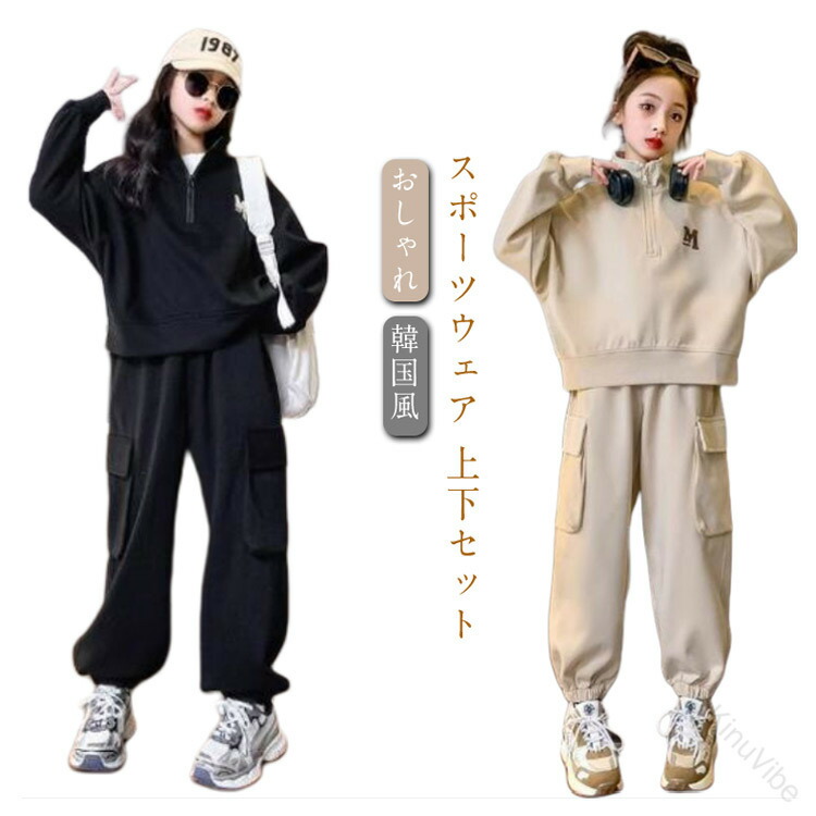 ジャージ セットアップ 子供服 女の子 スポーツ アウトドア 通販 ブラック ベージュ 130 140 150 160 170