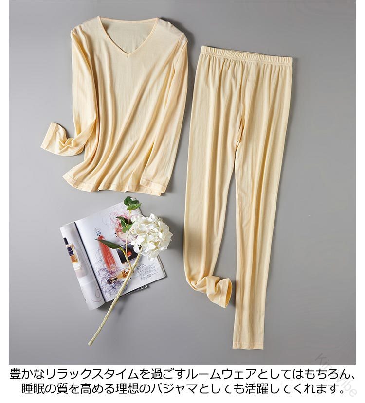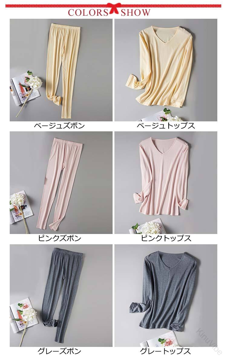 女性用 長袖 インナーシャツ 肌着 単 インナー 下着 ナイトウエア 続々登場 ベージュズボン ベージュトップス ピンクズボン ピンクトップス グレーズボン グレートップス M L XL 2XL