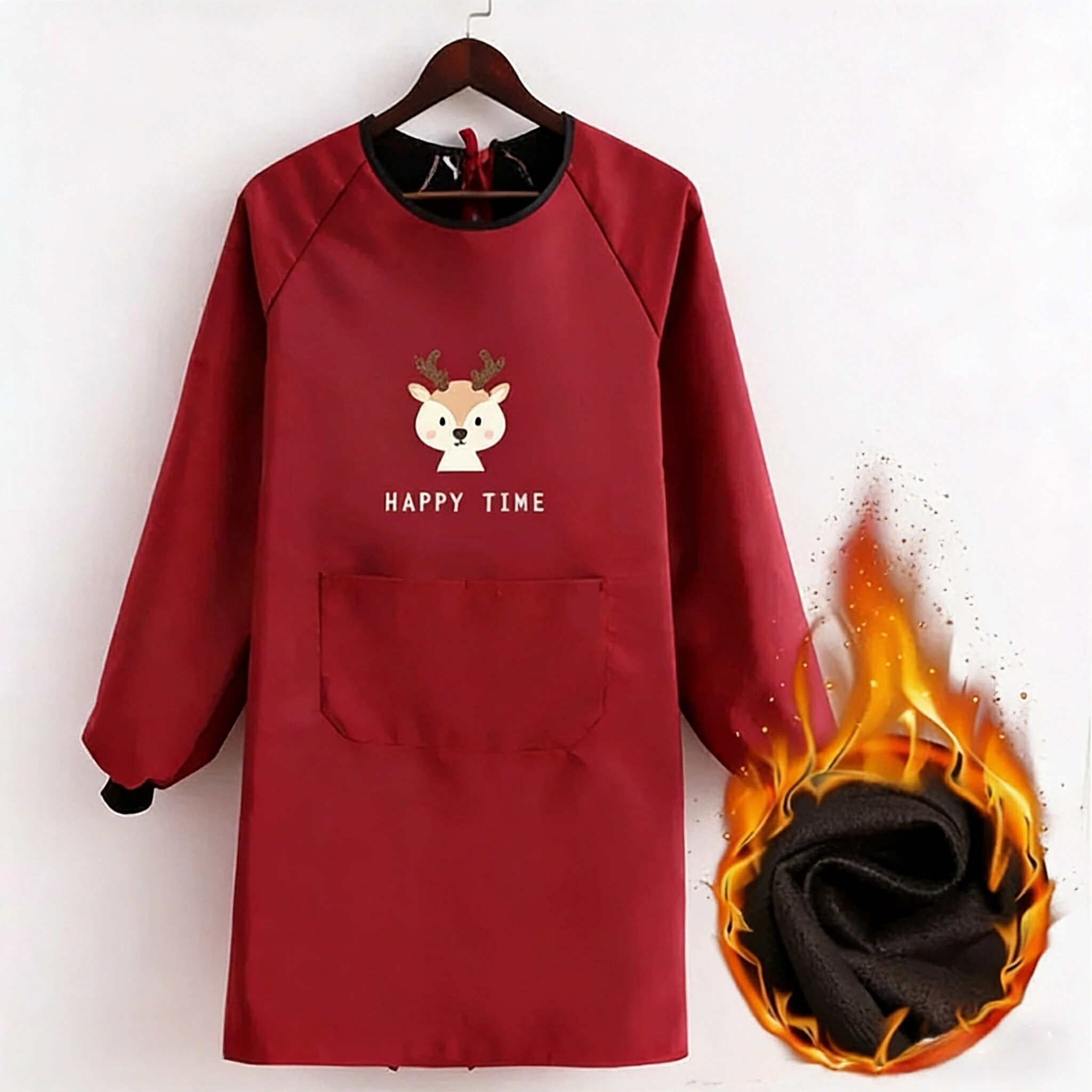 裏起毛 ロング丈 エプロン チュニック キッチン用品 食器 調理器具 超目玉商品 ブラック ベージュ レッド ピンク ブラック(手拭きタオル付き) ベージュ(手拭きタオル付き) レッド(手拭きタオル付き) ピンク(手拭きタオル付き)