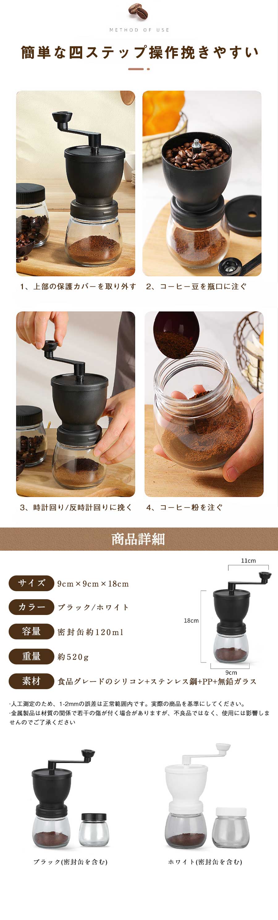 手挽きコーヒーミル 手動 珈琲ミル コ キッチン用品 食器 調理器具 早い者勝ち ホワイト ブラック
