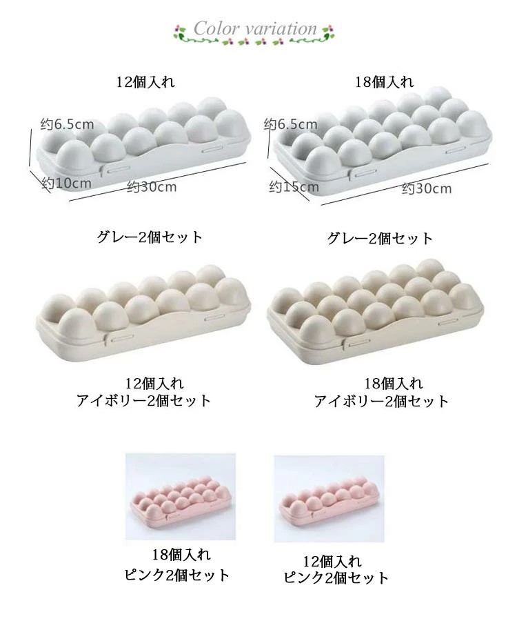 卵収納ケース エッグホルダー 卵ケース キッチン用品 食器 調理器具 新登場! アイボリー2個セット グレー2個セット ピンク2個セット 12個入れ 18個入れ