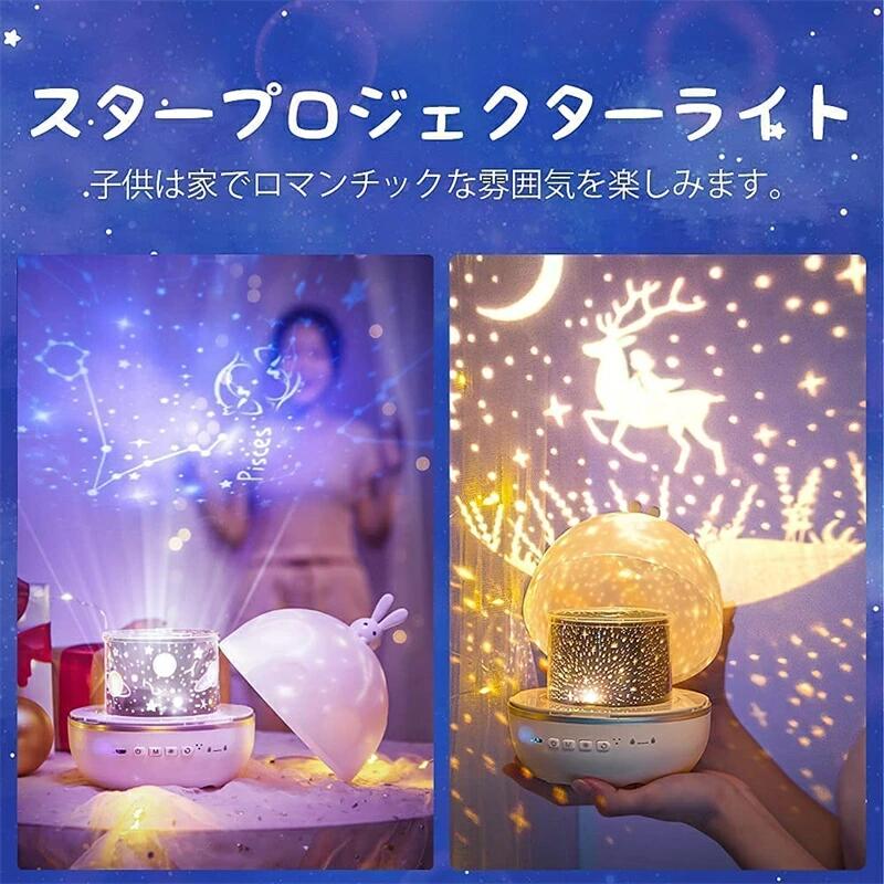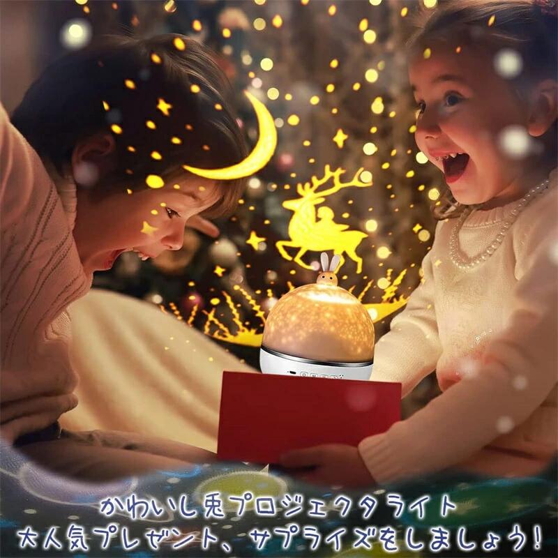 クリスマス飾りのライト、スタープロジェクターライト、星空ライト、寝かしつけプロジェクター、ナイトライト、ベッドサイドランプ、プラネタリウム 家庭用、クリスマスの雰囲気ライト、パーティーライト、生放送の背景ライト、インテリアとしてもいいです。子供の一人寝もサポートします。かわいい兎のデザインの人気プラネタリウムは女性、子供、赤ちゃんにとって、人気な誕生日プレゼントとクリスマスプレゼント・ギフトです。寝室、ベビールームなど色々な場所に適しています。またパーテイー、学園祭などの場合に飾りライトとしてもいいです。子供・彼女・家族・友達・同僚への誕生日プレゼント、クリスマスプレゼント・ギフトでも、クリスマス飾りでも、出産祝い/子供の日/入学/卒業/バレンタインのプレゼント・ギフトでもお勧めです。