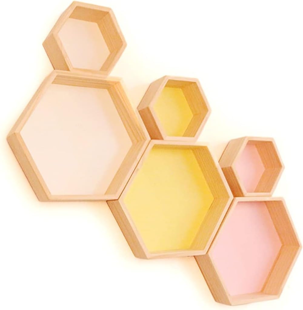 壁掛け棚 ウォールシェルフ 木製棚 壁 イエロー グリーン ナチュラル ピンク ブルー ホワイト S(対角線21cm)*1 M(対角線28cm)*1 L(対角線35cm)*1 S+L S+M S+M+L M+L