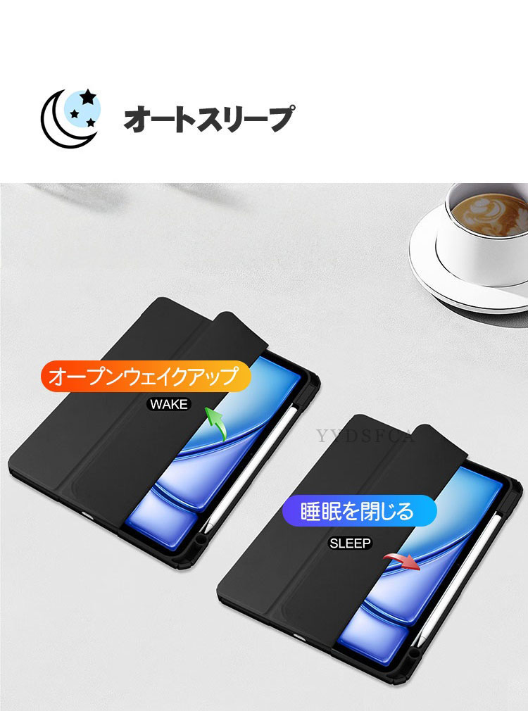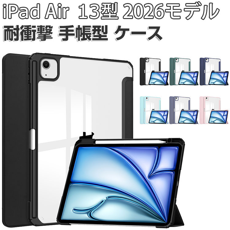 Apple iPad Air 13インチ (M4チップ) ケース 耐衝撃 カバー 2026年春モデル アイパッド エアー 13型 M4チップ CASE 持ちやすい 便利 Pencil Pro収納 装着したまま充電可能 オートスリープ スタンド機能 手帳型 ケース 人気 おすすめ タブレット 保護 iPad Air 13型 カバー