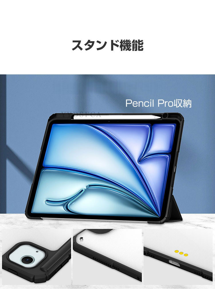 Apple iPad Air 13インチ ケース 耐衝撃 カバー 2026年春モデル アイパッド エアー 13型 M4チップ CASE 持ちやすい Pencil Pro収納 装着したまま充電可 便利