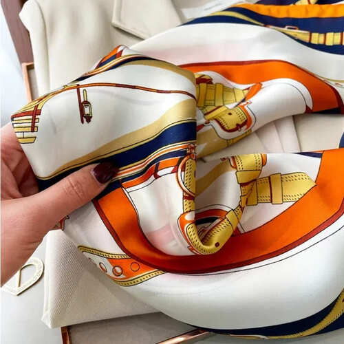 レディース レトロ デザイン チェーン マフラー スカーフ レディーススカーフ 続々登場 01 ブルー 02 オレンジ 03 ピンク 04 レッド