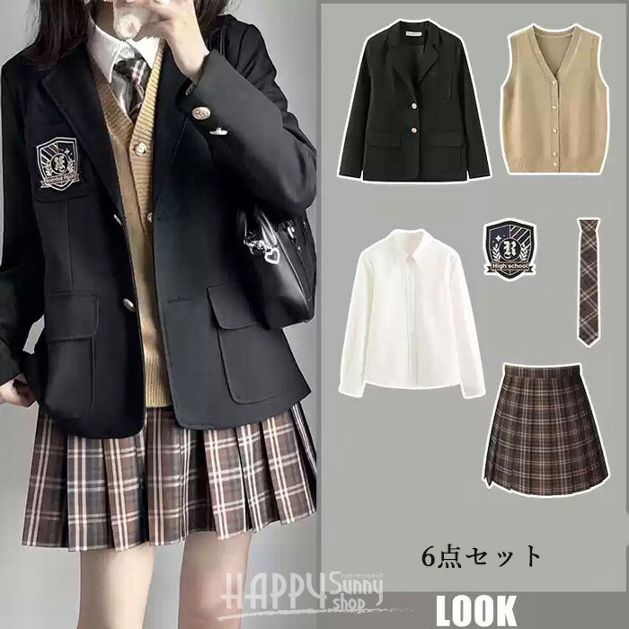 卒業式 スーツ 女の子 女子 制服 ブレザー スカート ネクタイ ニットベスト セット 入学式 学生服 チェック柄 グレー ブラック 黒 ブラウン シャツ 長袖 プリーツスカート 高校生 ジャケット