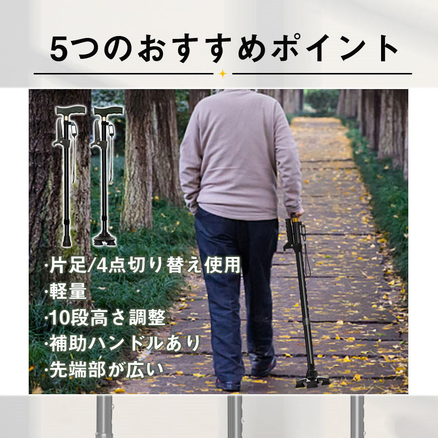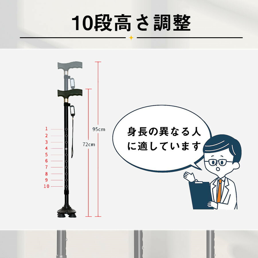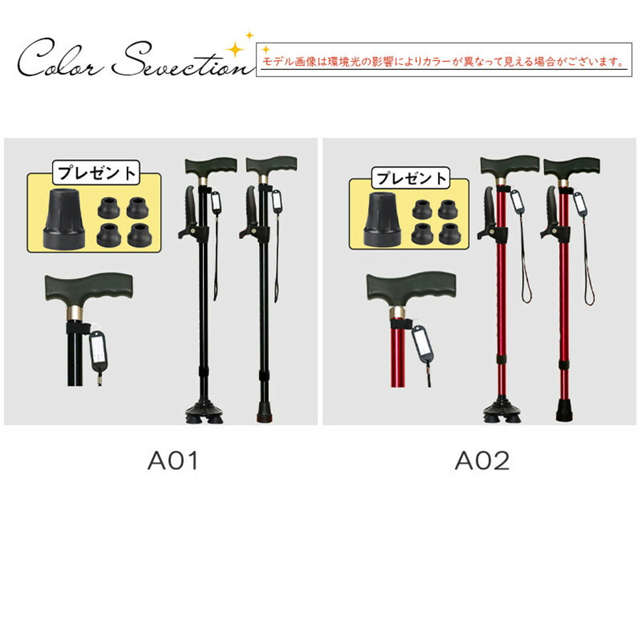 杖 ステッキ 軽量 10段階調整 伸縮 A01 A02