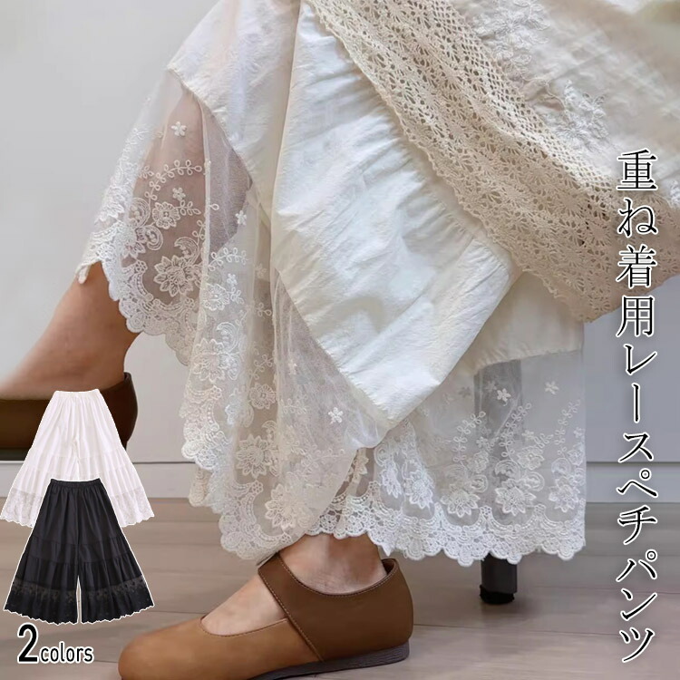 ペチパンツ 重ね着 レース パンツ レ ボトムス キュロットスカート 早い者勝ち ホワイト ブラック