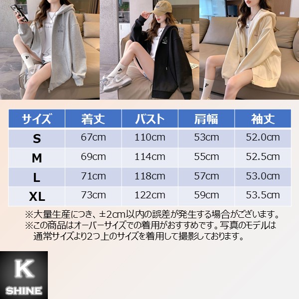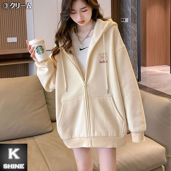 裏起毛 ジップパーカ オーバーサイズ トップス パーカー 早い者勝ち (1)グレー (2)ブラック (3)クリーム S M L XL
