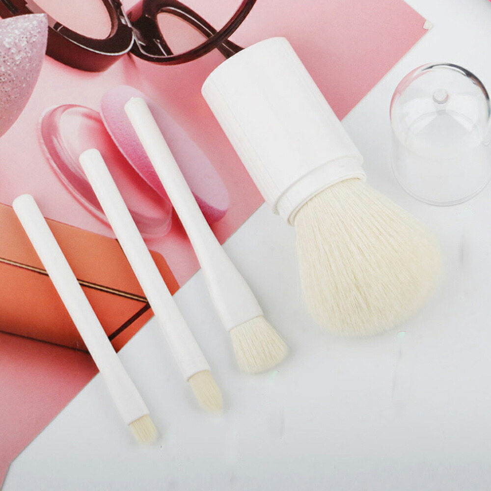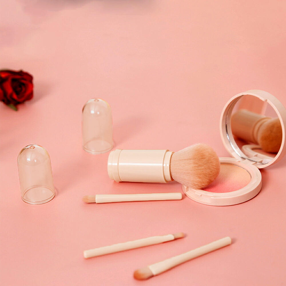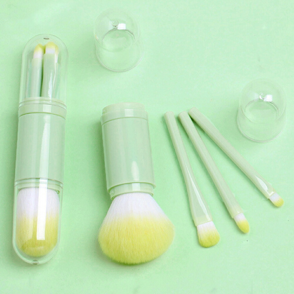 一体型 蓋付き メイクブラシ 4本セッ 1 アップルグリーン 2 サーモンピンク 3 パールホワイト