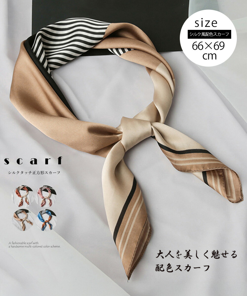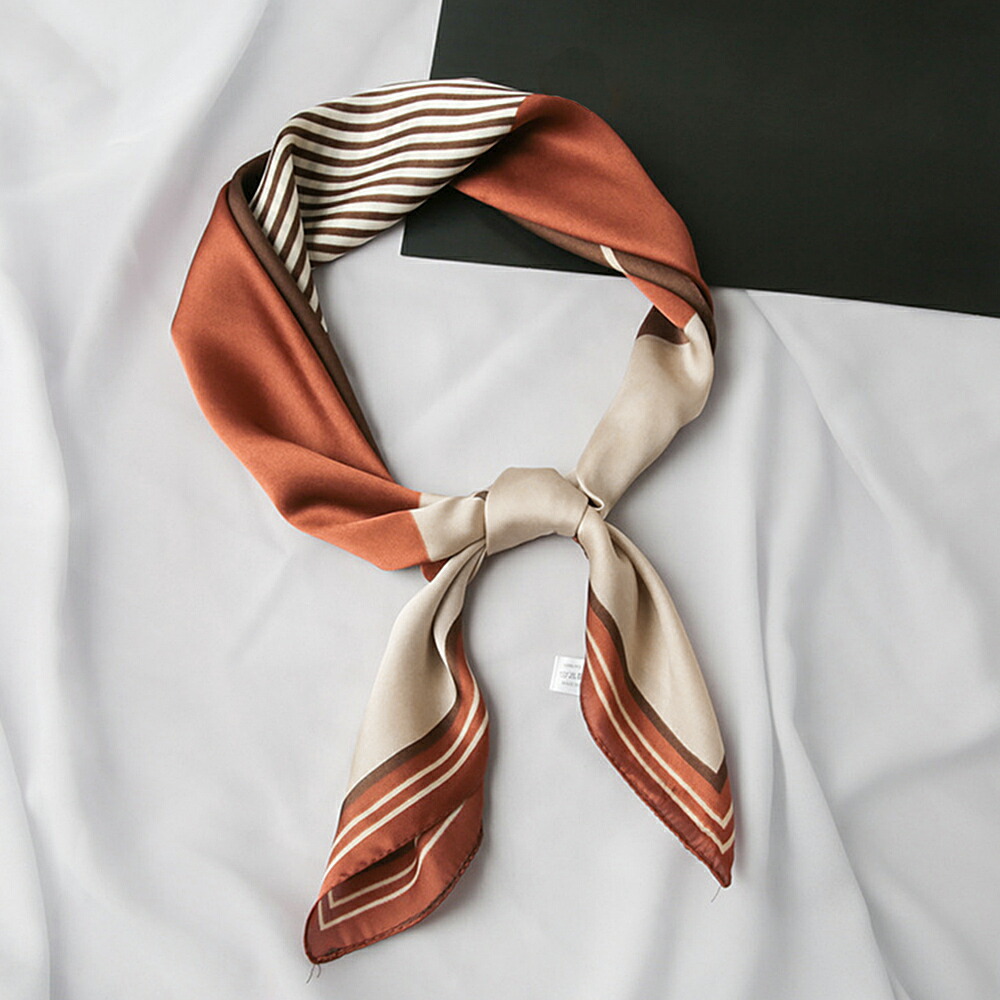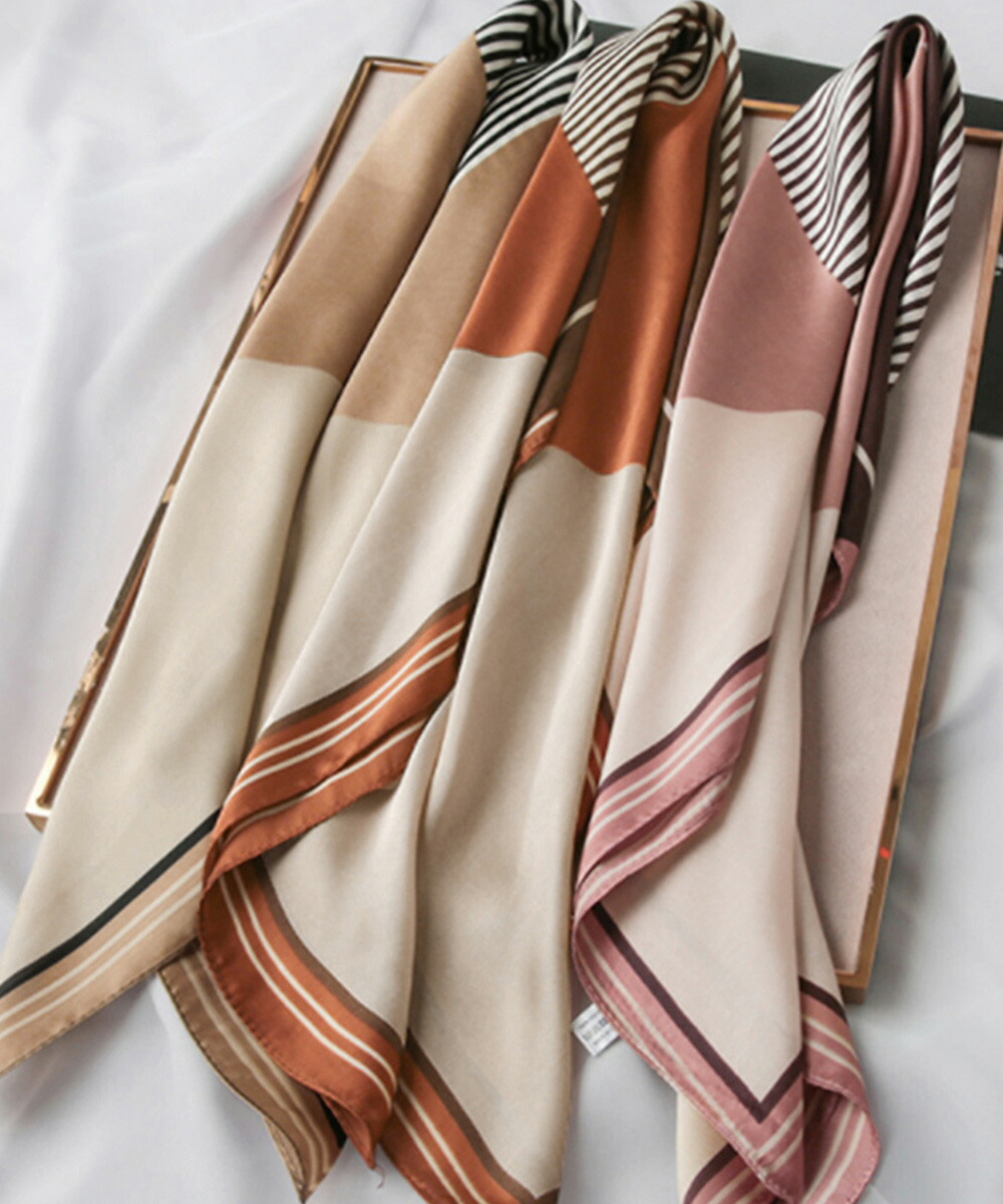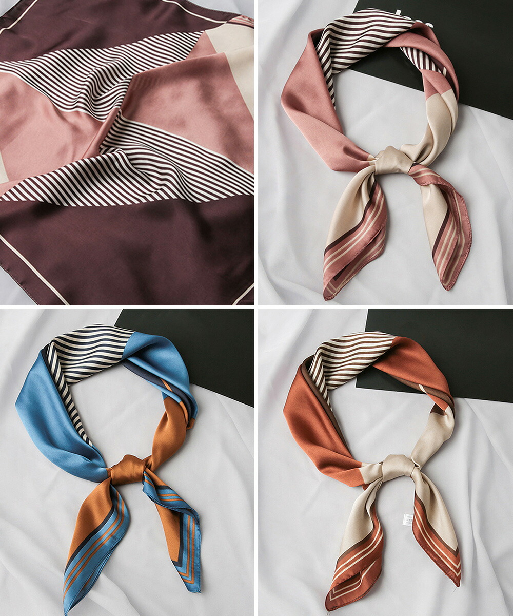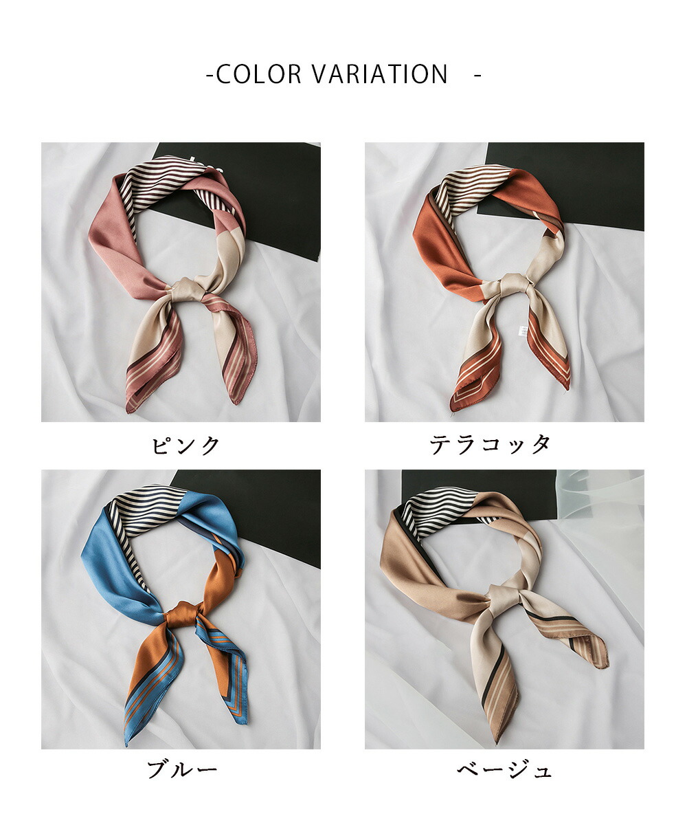 シルク風スカーフ 首巻き 配色バンダナ バッグ 小物 ブランド雑貨 新登場! テラコッタ ピンク ブルー ベージュ