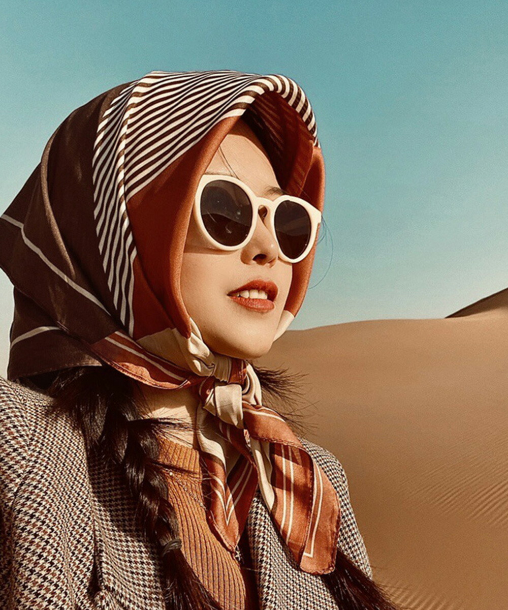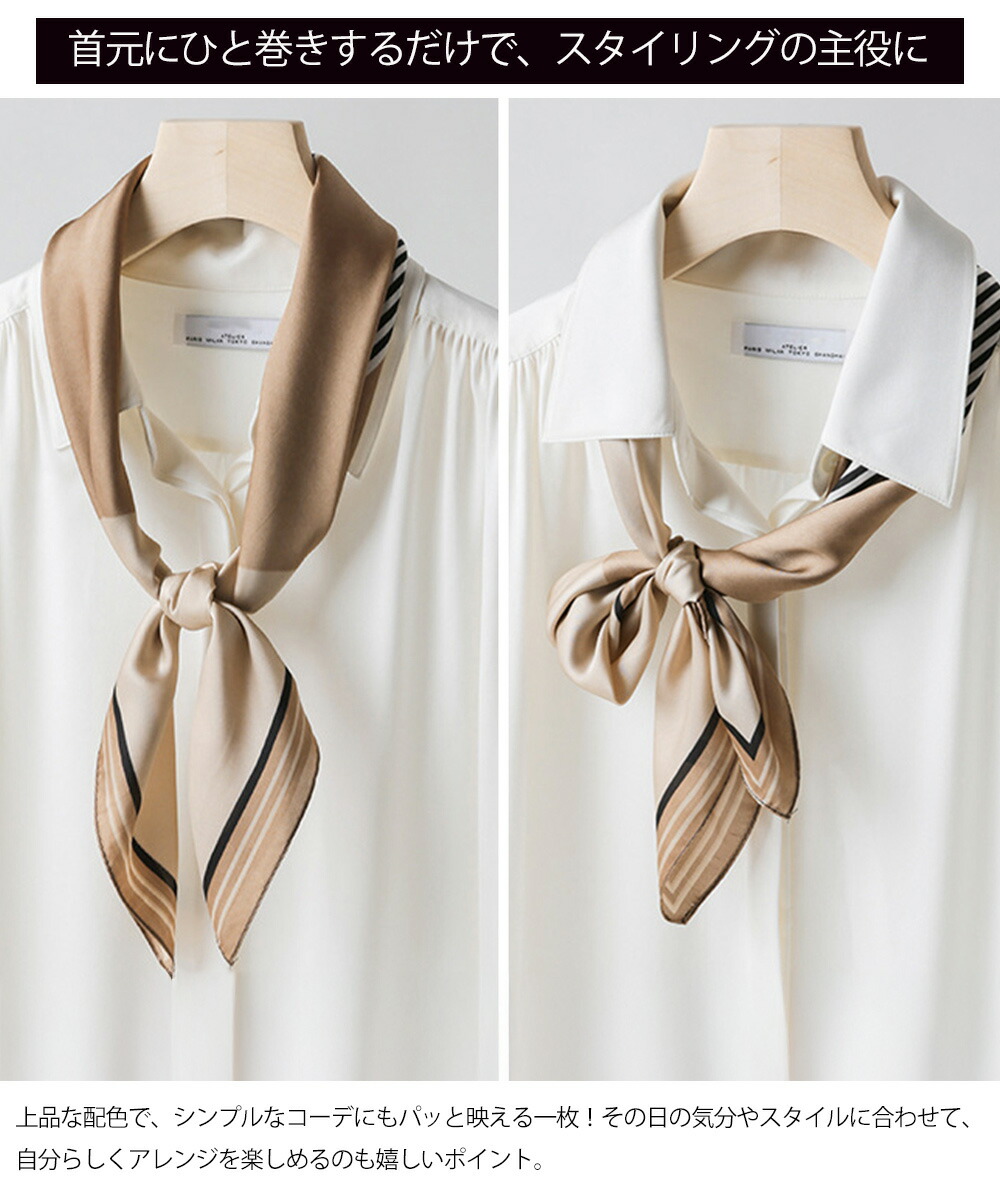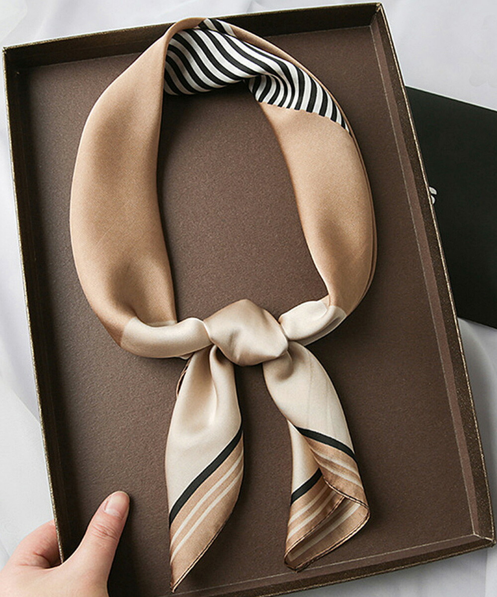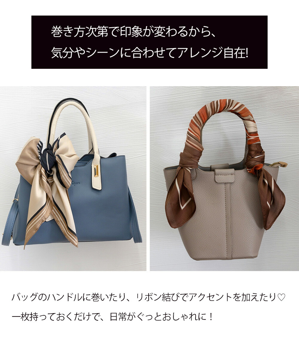 シルク風スカーフ 首巻き 配色バンダナ バッグ 小物 ブランド雑貨 新登場! テラコッタ ピンク ブルー ベージュ