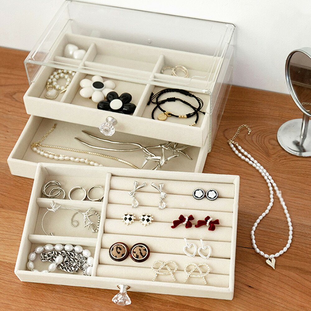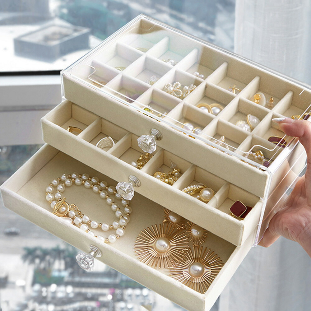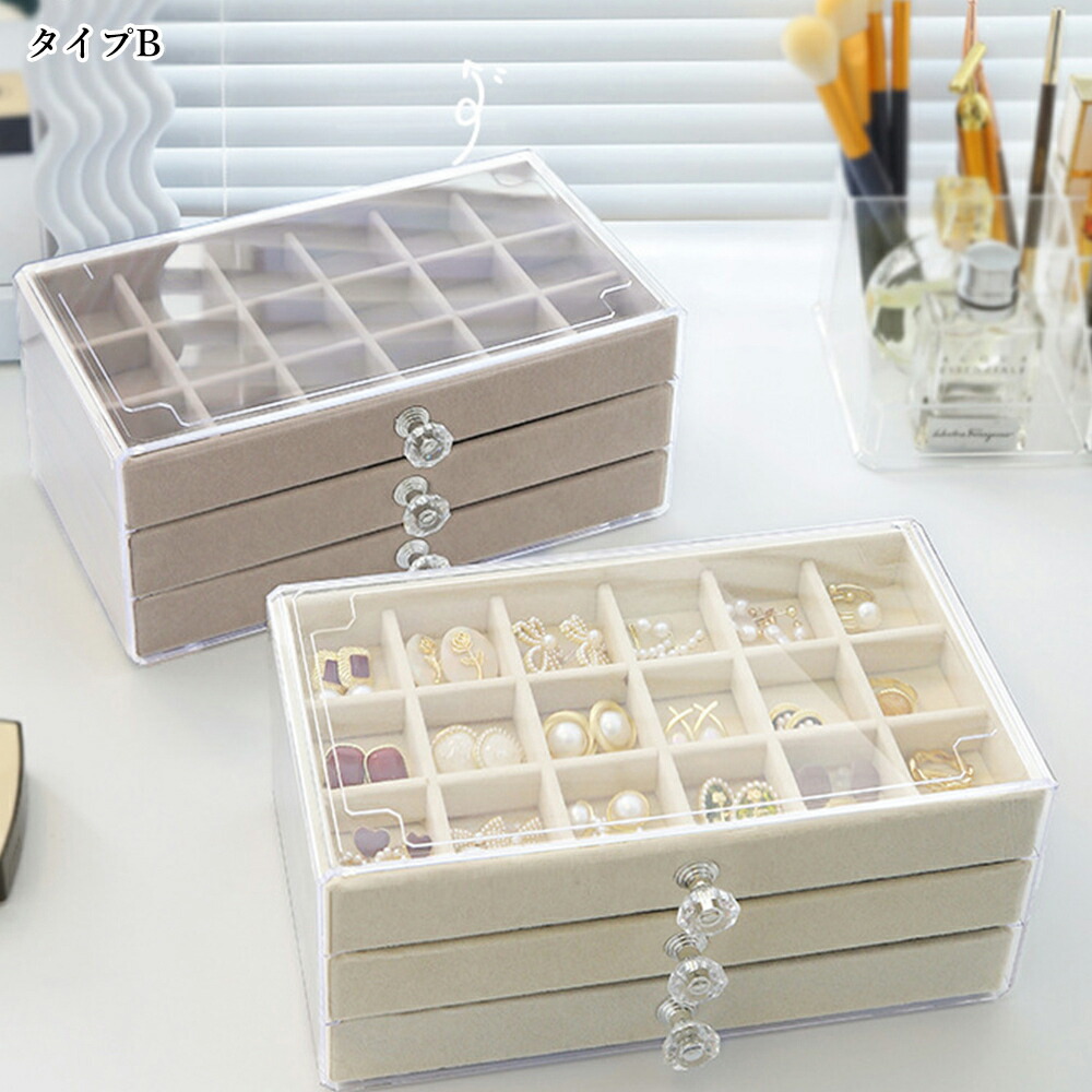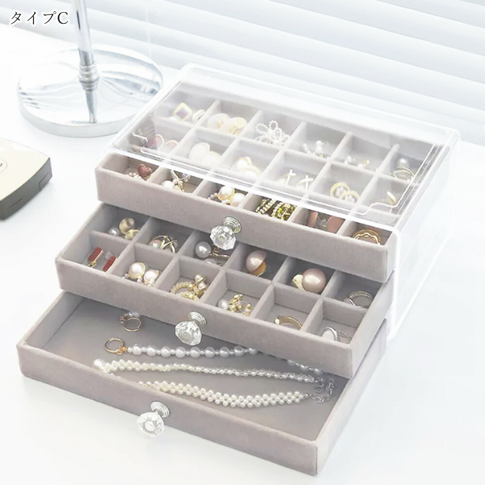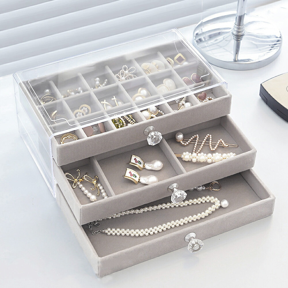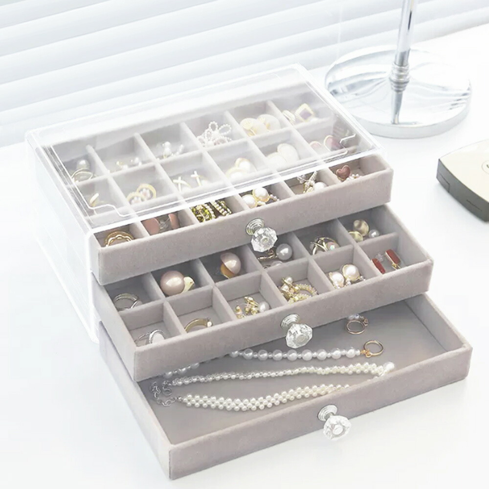3段引き出しジュエリー収納ボックス 防 ジュエリー アクセサリー用品 収納ボックス ケース 続々入荷中 A(リング収納付き)グレー A(リング収納付き)ベージュ B(仕切り*24)グレー B(仕切り*24)ベージュ C(仕切り*36)グレー C(仕切り*36)ベージュ