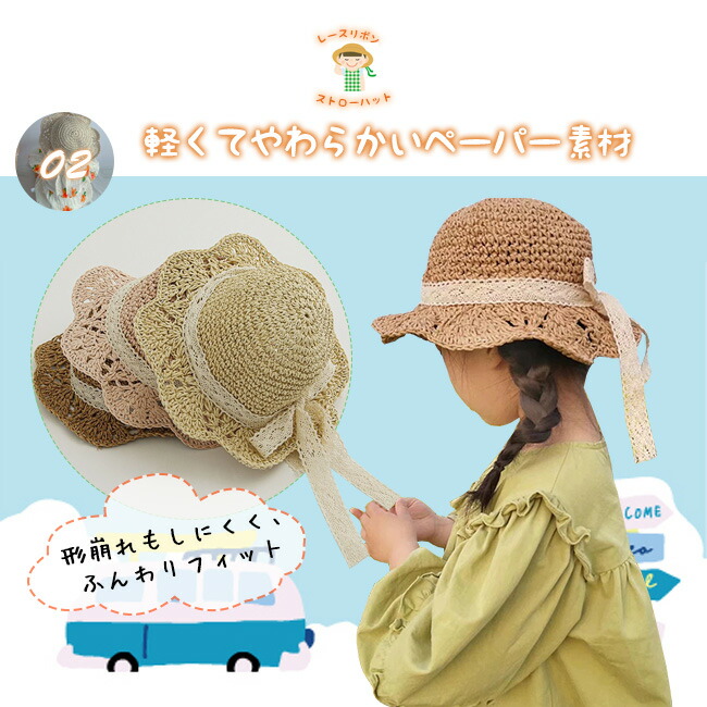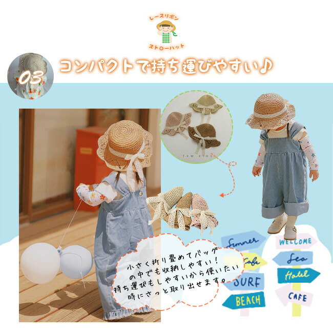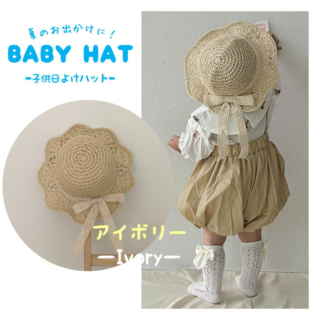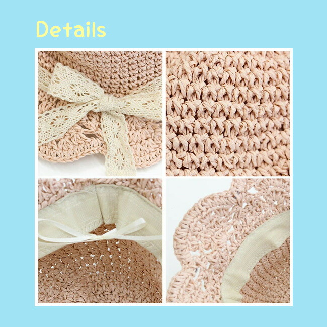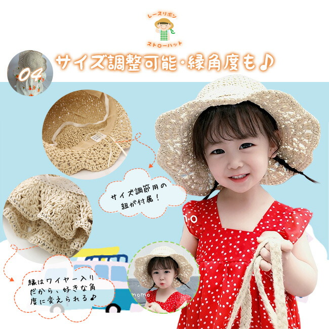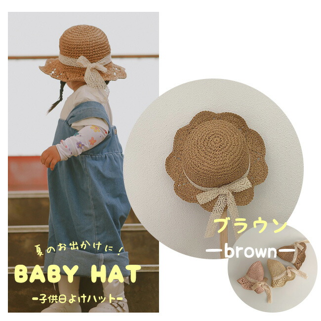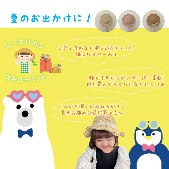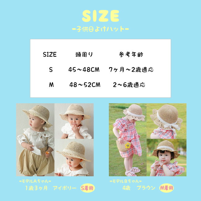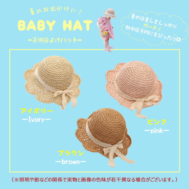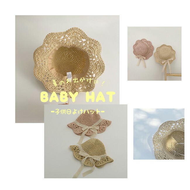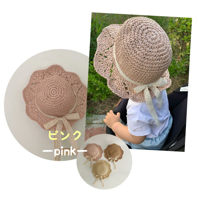 子供 帽子 麦わら帽子 子供用 女の子 キッズ ベビー マタニティ 新作 45~48cm(7ヶ月~2歳適応) 48~52cm(2~6歳適応) ブラウン アイボリー ピンク