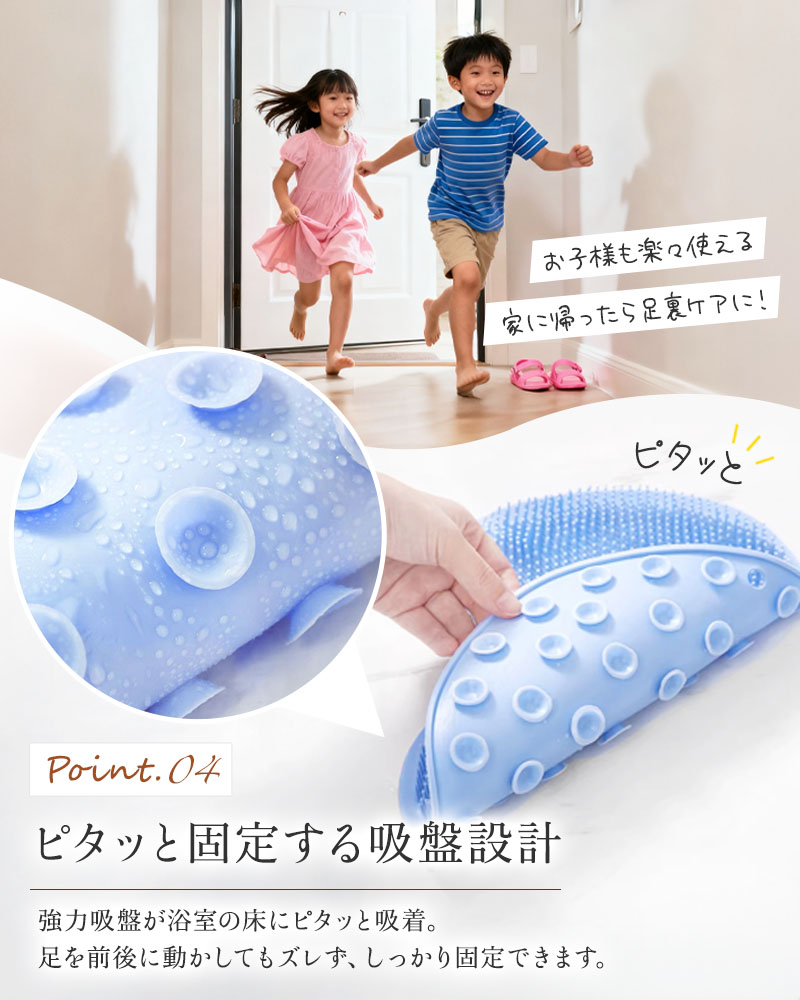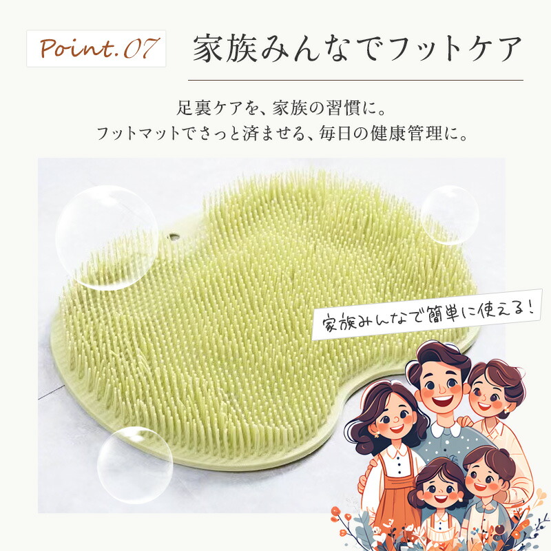 家族みんなで使えるフットケアマットで、毎日の入浴がもっと快適に!