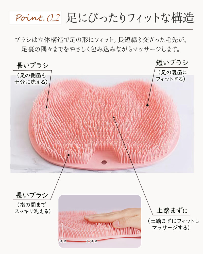 ◆ POINT 2:足にフィットする立体ブラシ構造
