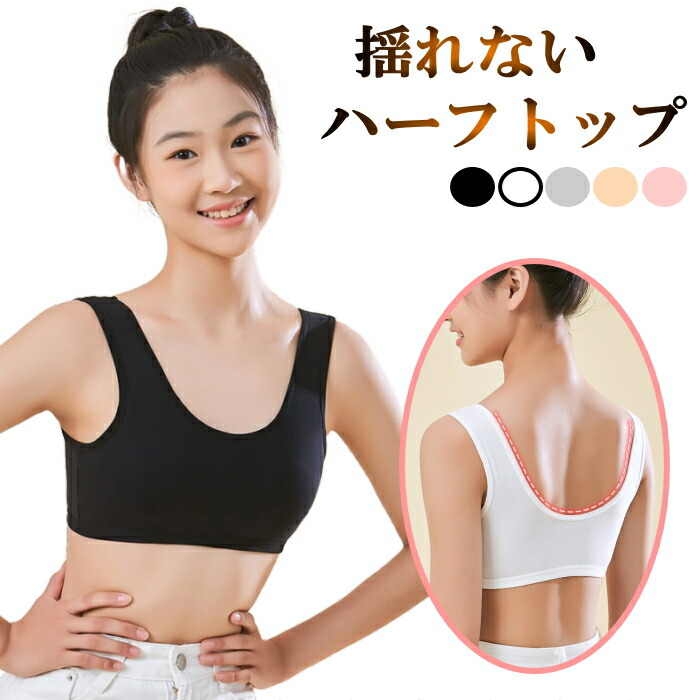 スポーツブラ スポブラ 揺れない パット 小学生 中学生 高校生 大人 レディース キッズ ジュニア 肌色 黒 白 ダンス衣装 ハーフトップ ソフトブラ ずれない ノンワイヤー ヨガ ジム パッド入り