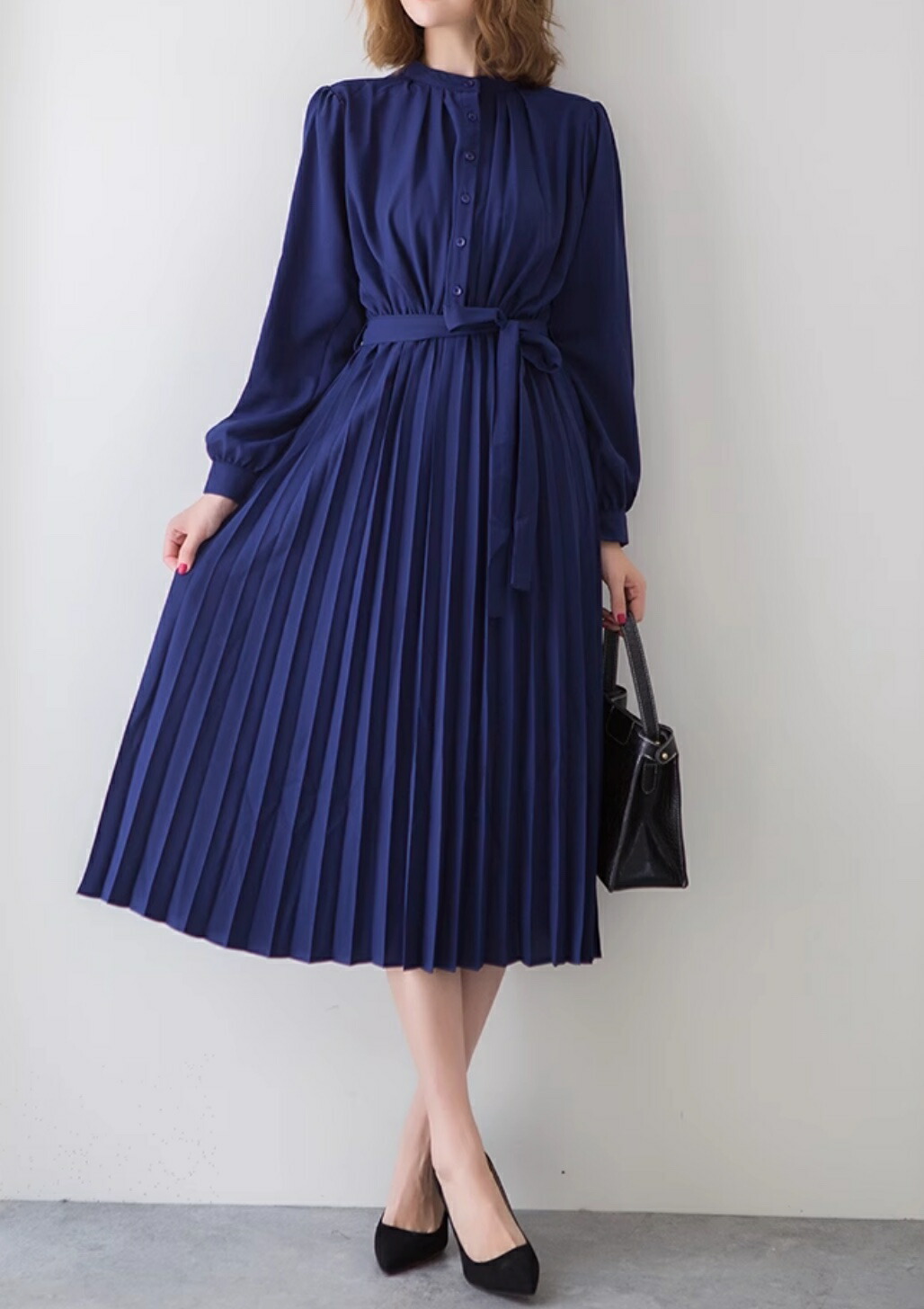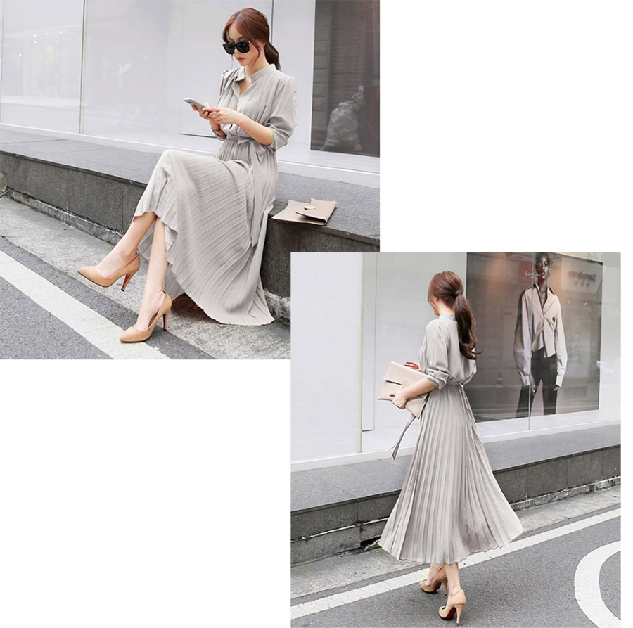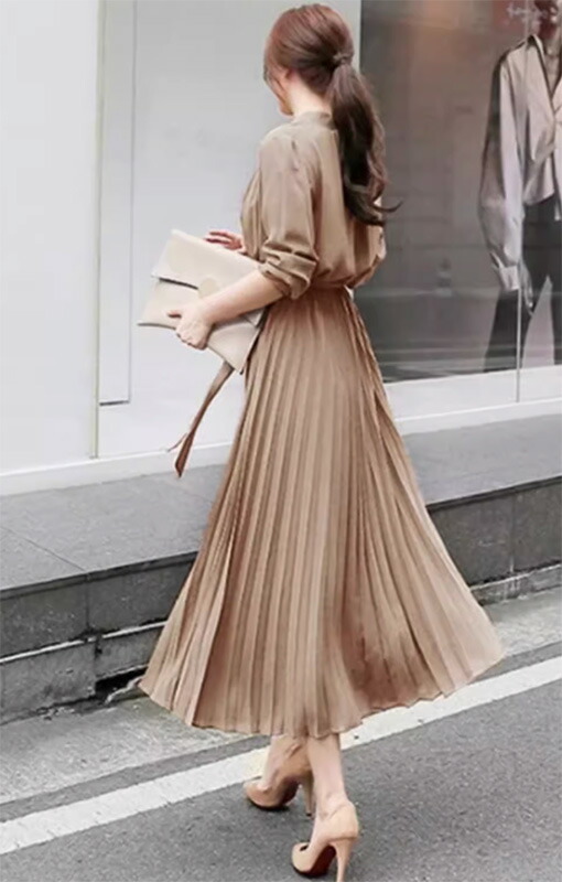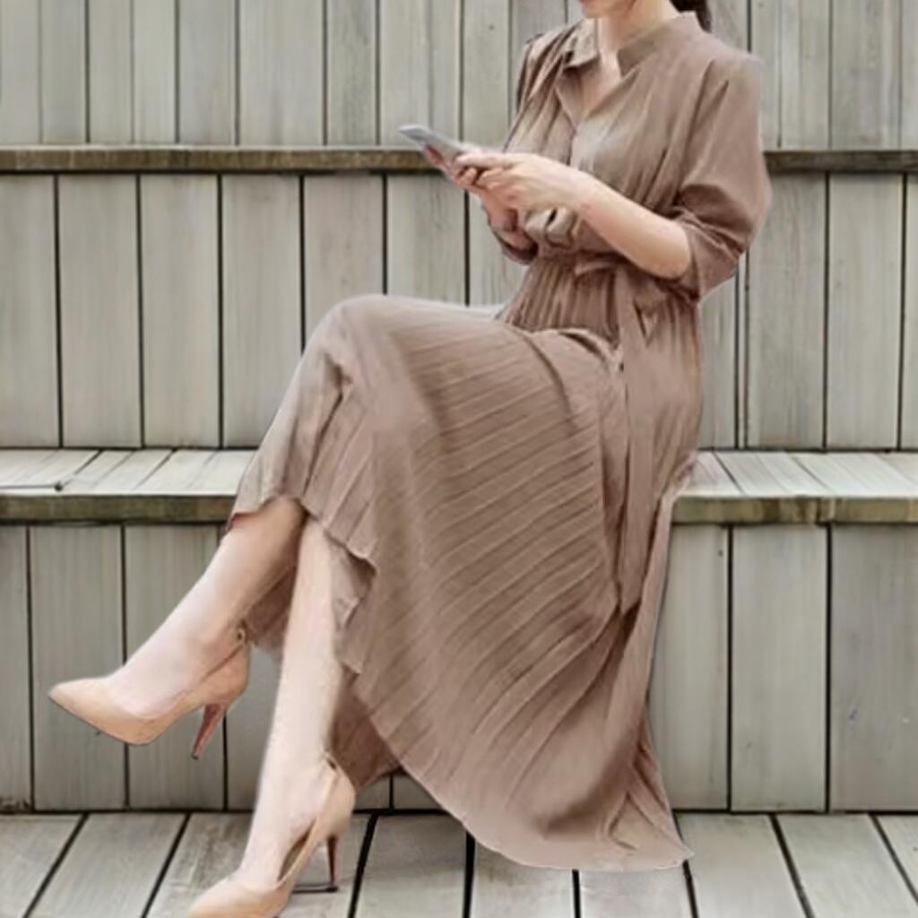 ワンピース レディース ロングワンピース きれいめ カジュアル 長袖 シャツワンピース オフィスカジュアル パーティードレス 秋 冬 春 夏 大人 上品 フレア プリーツ マタ フォーマル