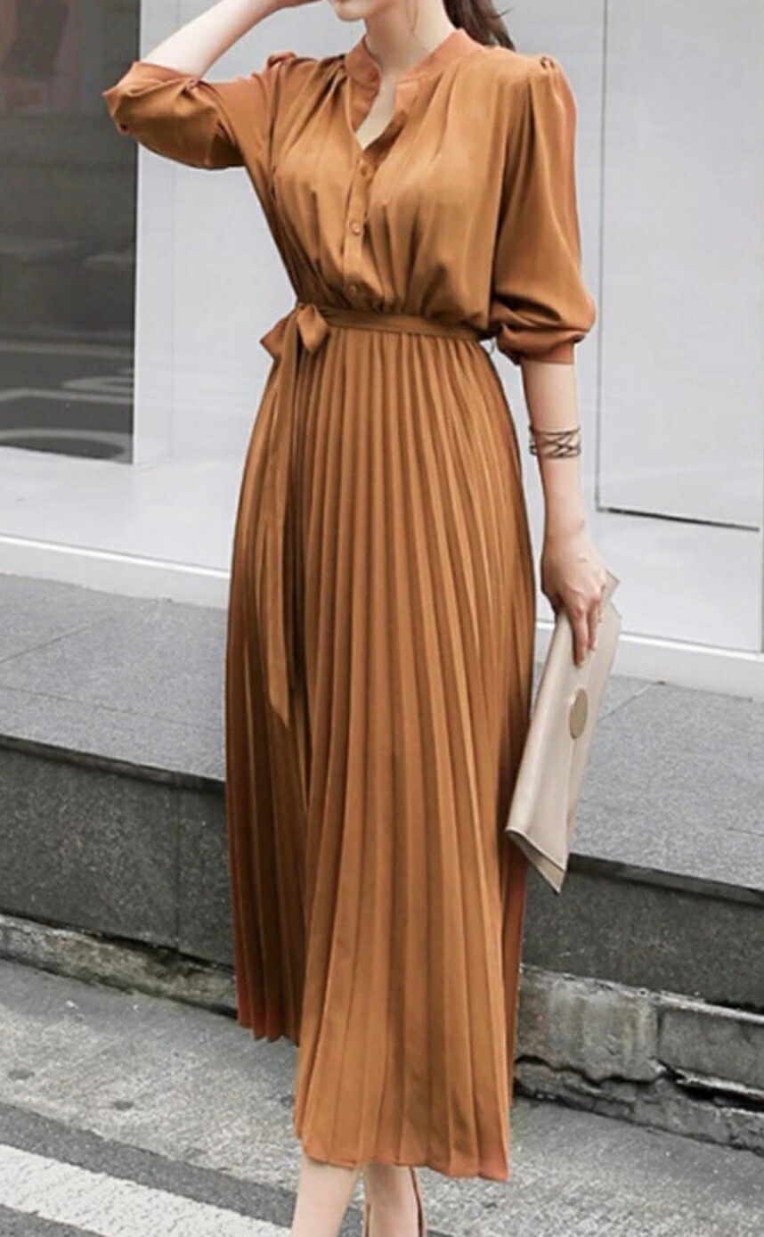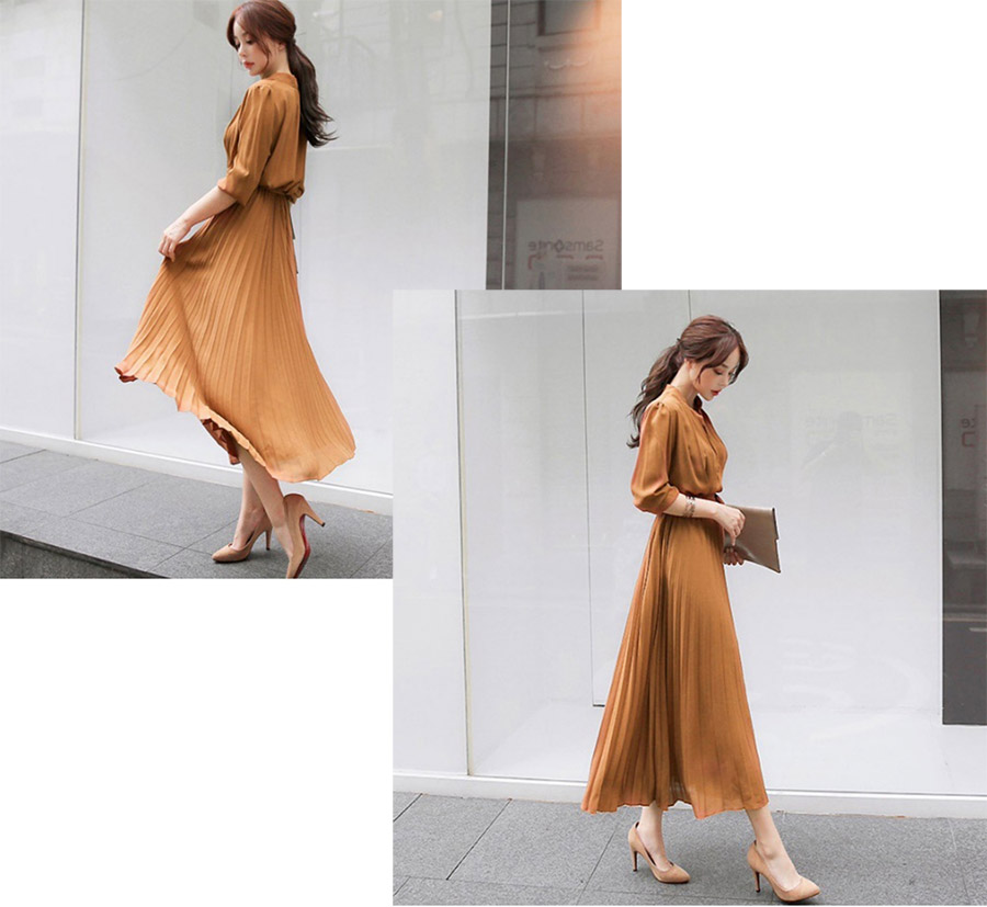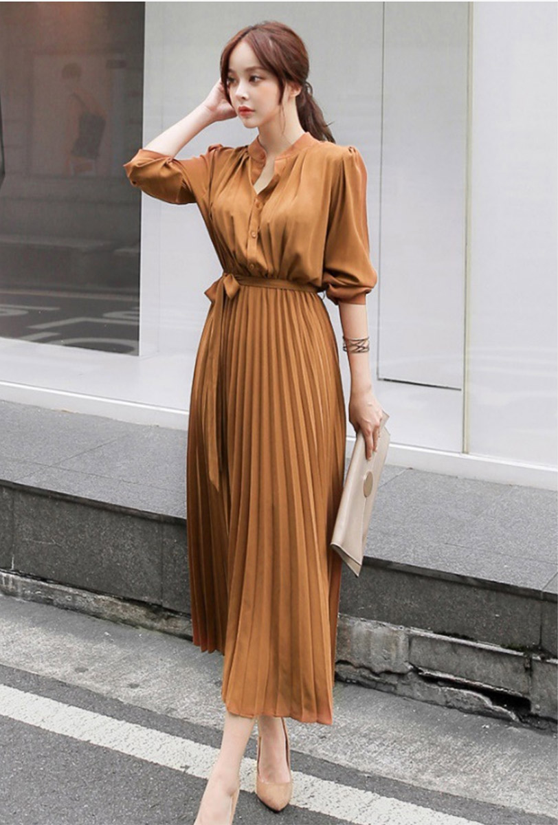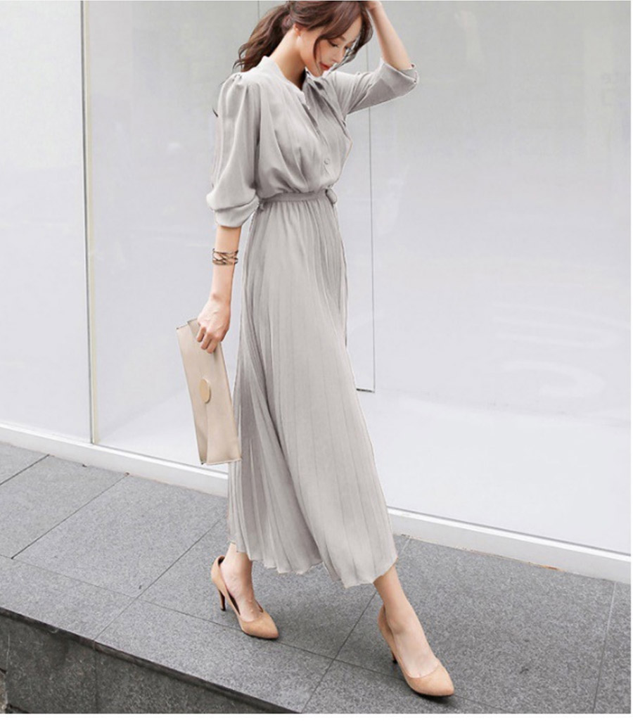 ワンピース レディース ロングワンピース きれいめ カジュアル 長袖 シャツワンピース オフィスカジュアル パーティードレス 秋 冬 春 夏 大人 上品 フレア プリーツ マタ フォーマル