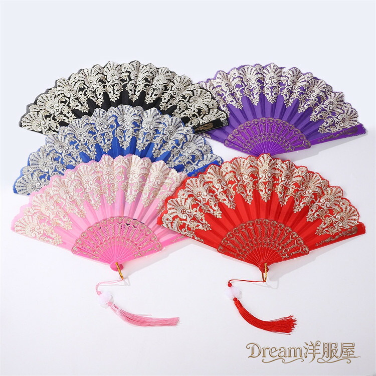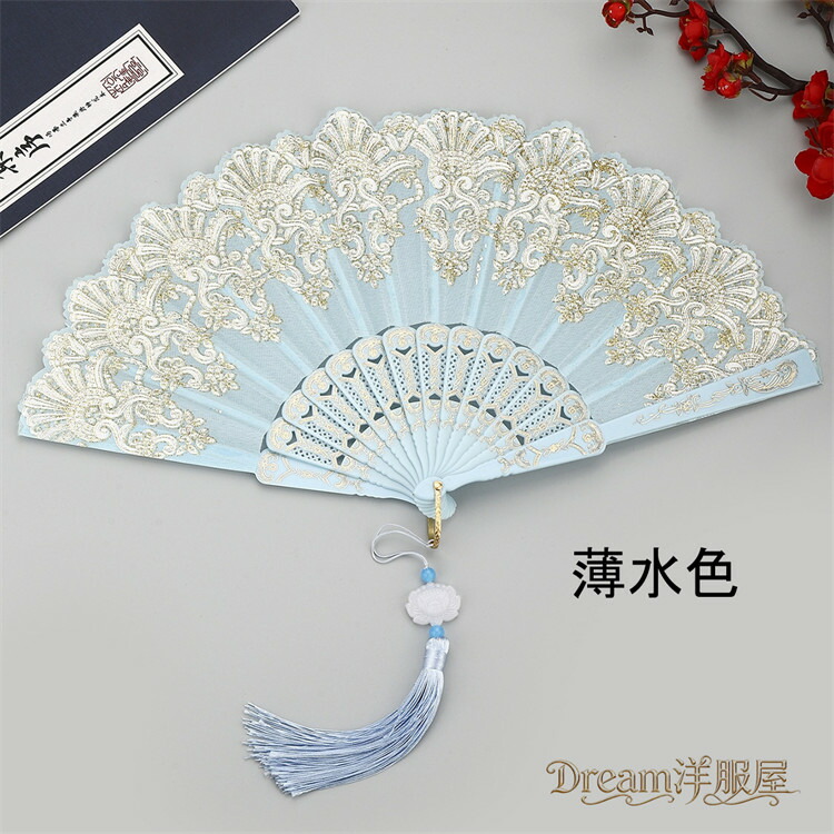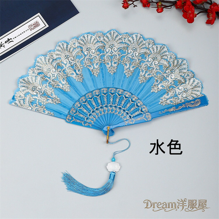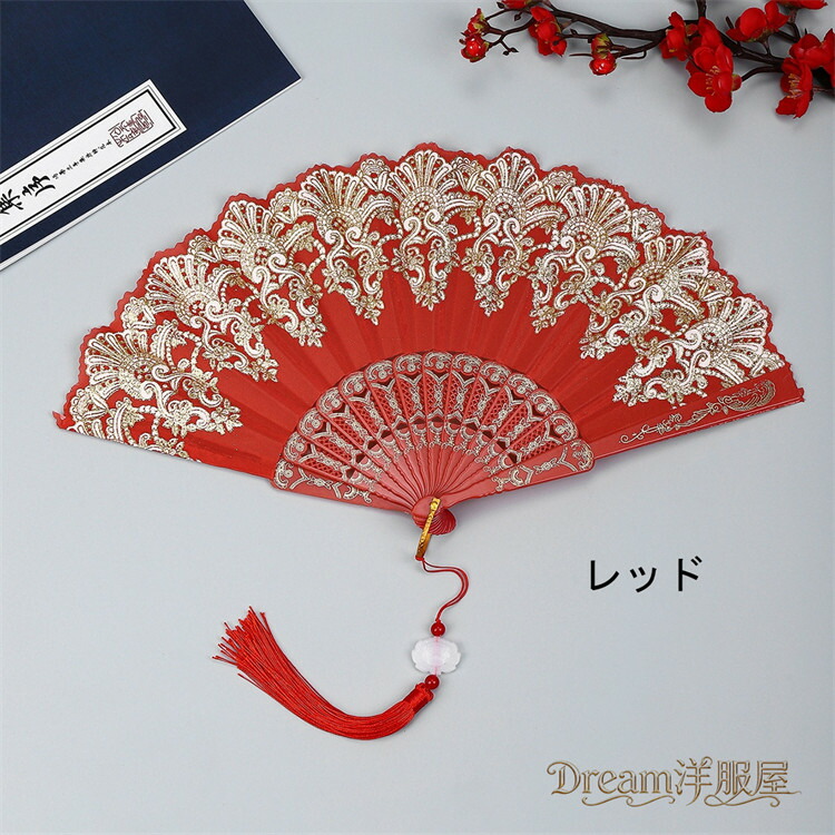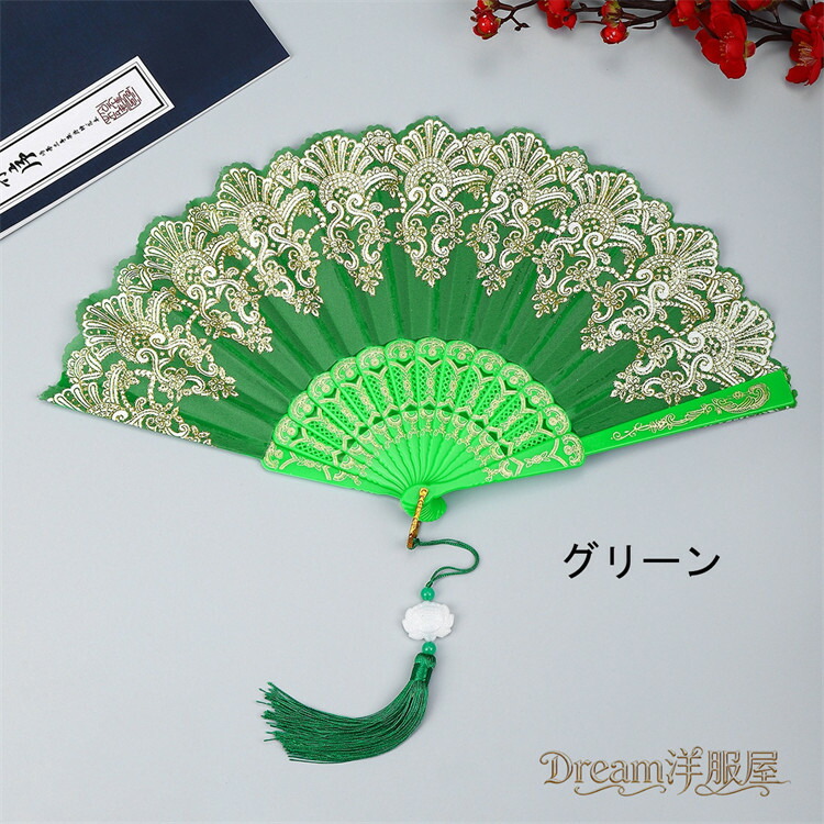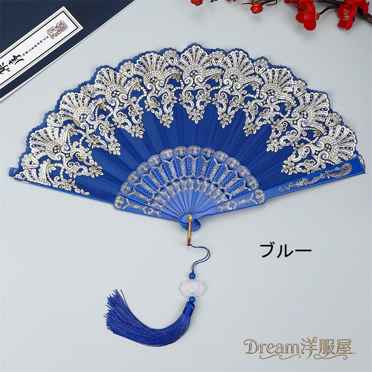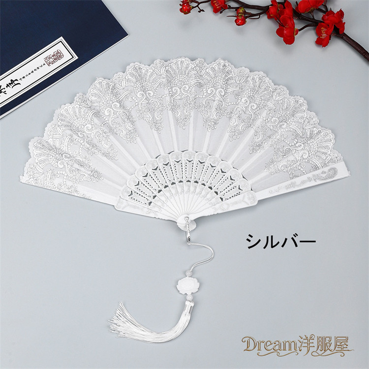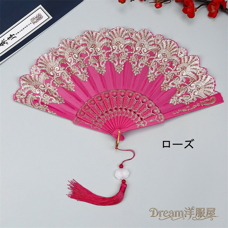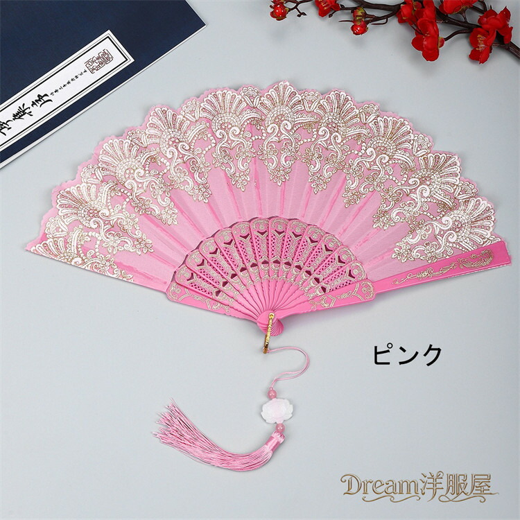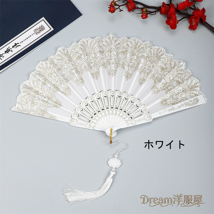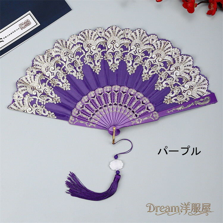 房付き12色展開レース扇子 練習ダンス 和服 和装小物 扇子 人気 レッド ピンク 水色 ブルー ローズ イエロー パープル ブラック ホワイト グリーン シルバー 薄水色