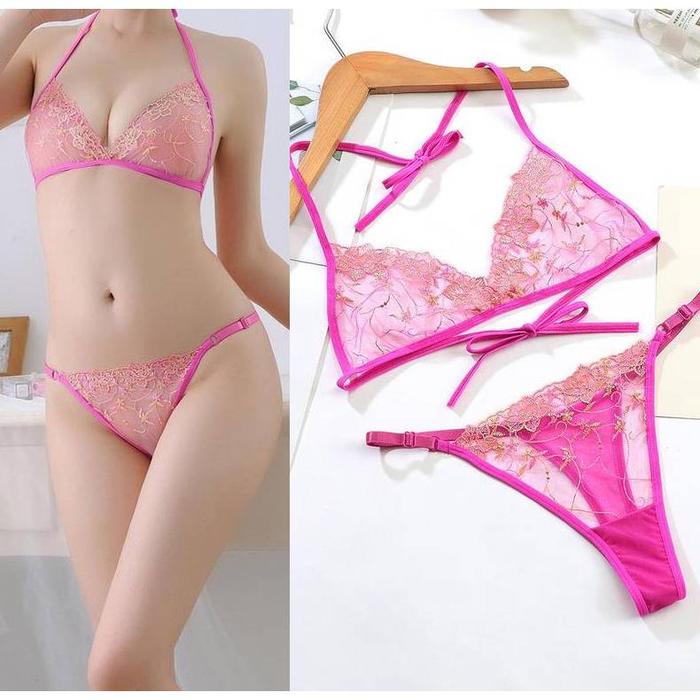 このノンワイヤーブラジャーとショーツのセットは、エレガントな刺繍とシースルー素材を使用しており、洗練された魅力を演出します。ホルターネックデザインとバック結びタイプにより、サイズ調整が可能で、多くの方にフィットする設計となっています。超軽薄な素材を採用しているため、着心地が軽やかで、長時間の着用でも快適です。