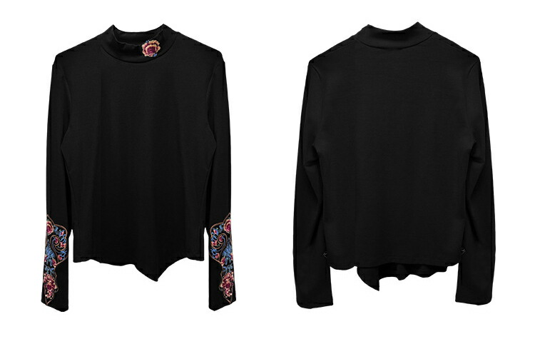 レディース Tシャツ カットソー 刺繍 レディースファッション 特集 ボルドー ブラック M L 2XL