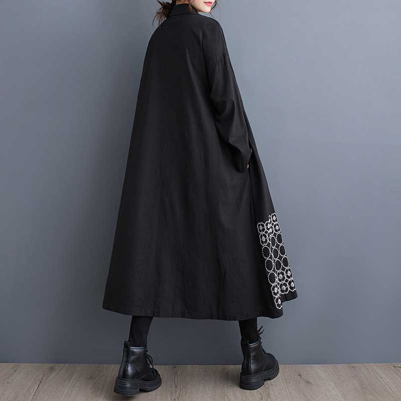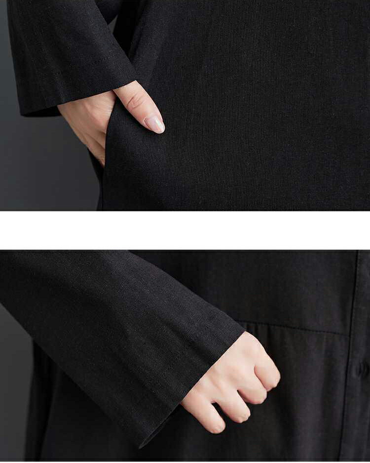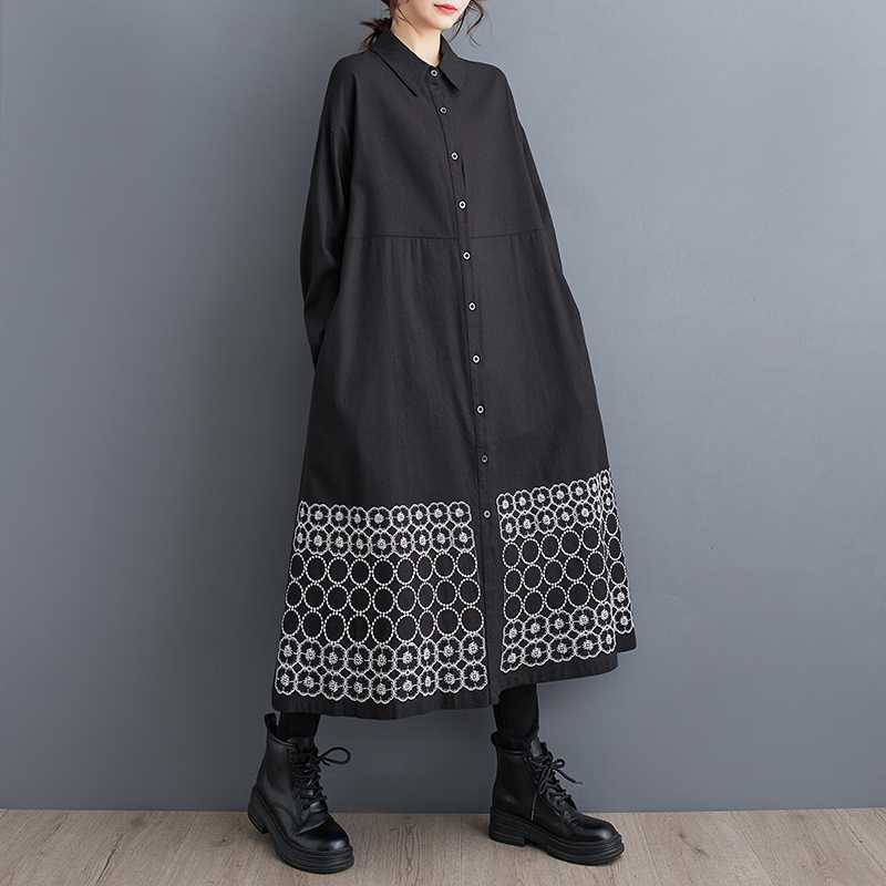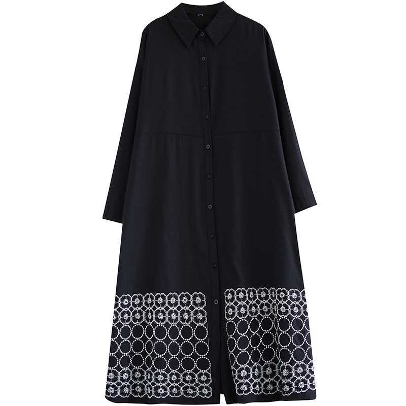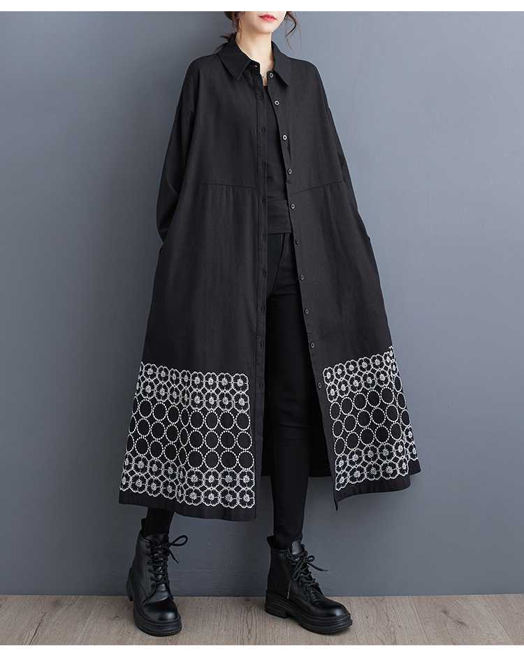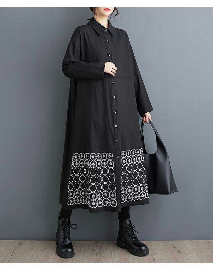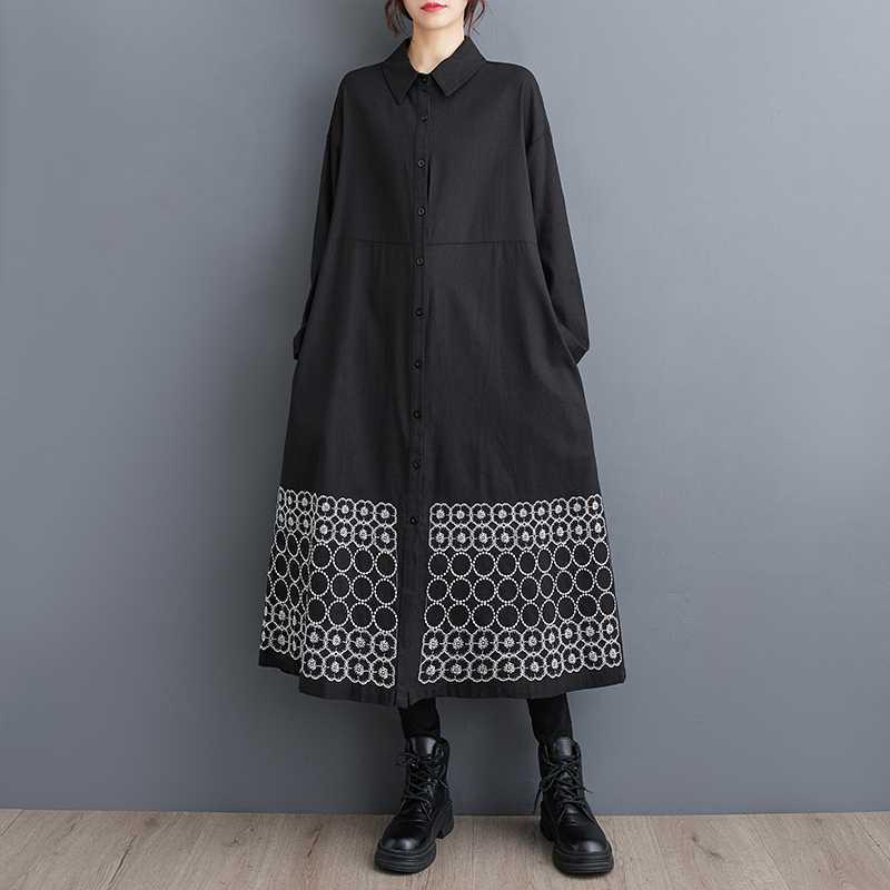 裾刺繍 シャツワンピース ロング丈 長