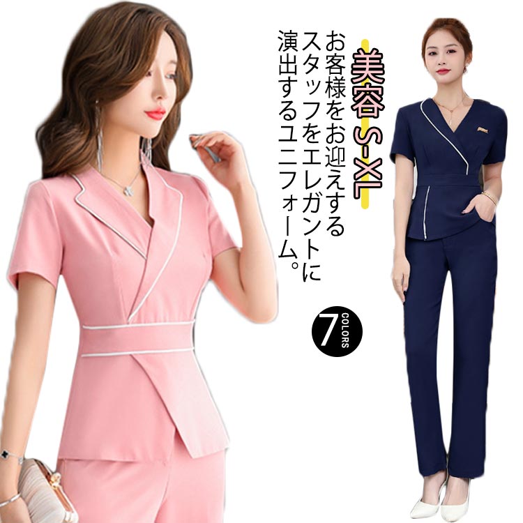 エステ ユニフォーム 半袖 サロン通勤 グレータイプ1 ネイビータイプ1 ピンクタイプ1 グレータイプ2 ブラックタイプ2 ネイビータイプ2 ピンクタイプ2 S M L XL
