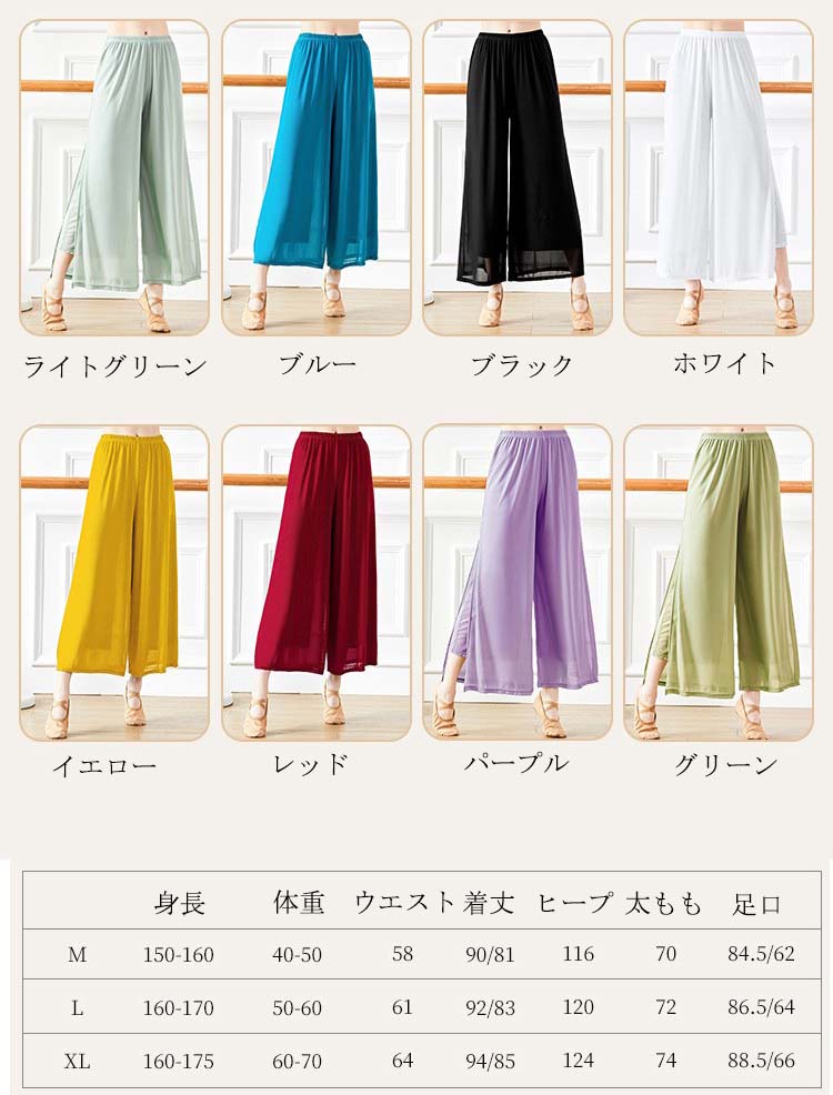 ダンス衣装 レディース ワイドパンツ スポーツ アウトドア 人気 M L XL ライトグリーン ブルー ブラック ホワイト イエロー レッド パープル グリーン