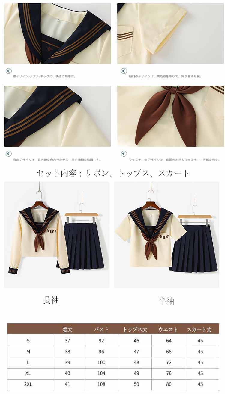 セーラー服 3点セット女子高校 コスプ コスプレ 変装 仮装 コスチューム一式 新登場! S M L XL 2XL 長袖 半袖