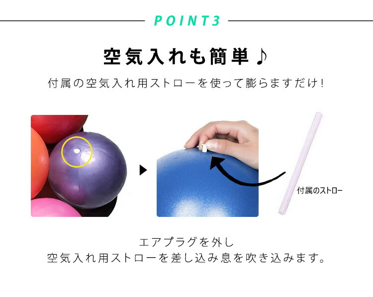 ヨガボール ピラティスボール ストレッチ ミニ ボール 空気入れストロー ミニバランスボール フィットネスボール ジムボール トレーニング エクササイズ お腹 お尻 体幹 補助 リハビリ ダン 筋トレ