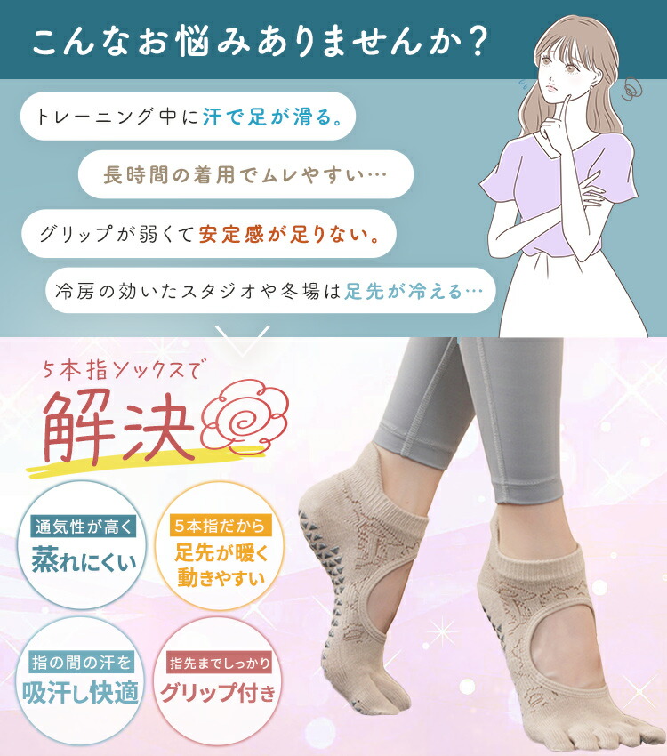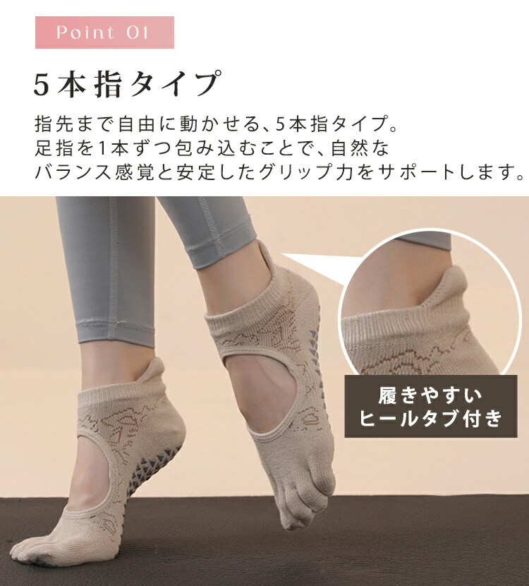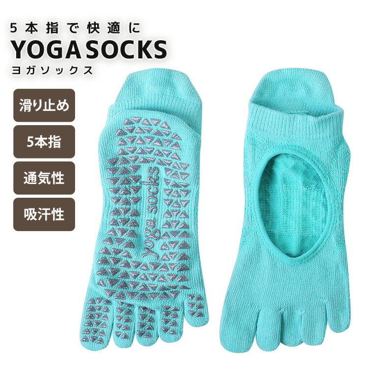 ヨガソックス 5本指 滑り止め 靴下 ブラック ベージュ ピンク サックスブルー ターコイズ ライトグリーン