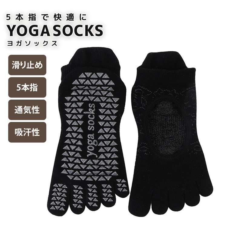 ヨガソックス 5本指 滑り止め 靴下 レディース くるぶし シンプル 無地 黒 ヨガ ソックス くつ下 ホットヨガ エクササイズ フィットネス ストレッチ 体操 ダンス 甲開き ジャガード ジ バレエ