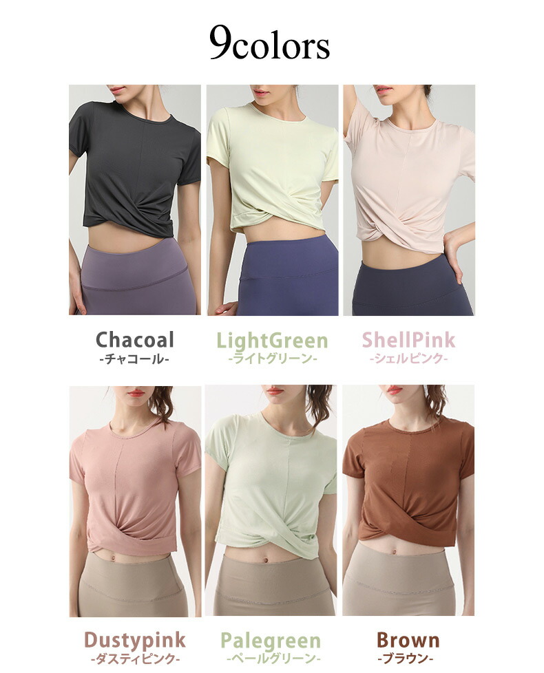 ヨガウェア トップス レディース ピラ ヨガ ピラティス ウェア トップス 早い者勝ち S M L XL チャコール ライトグリーン シェルピンク ダスティピンク ペールグリーン ブラウン ブルー ホワイト ブルーグレー