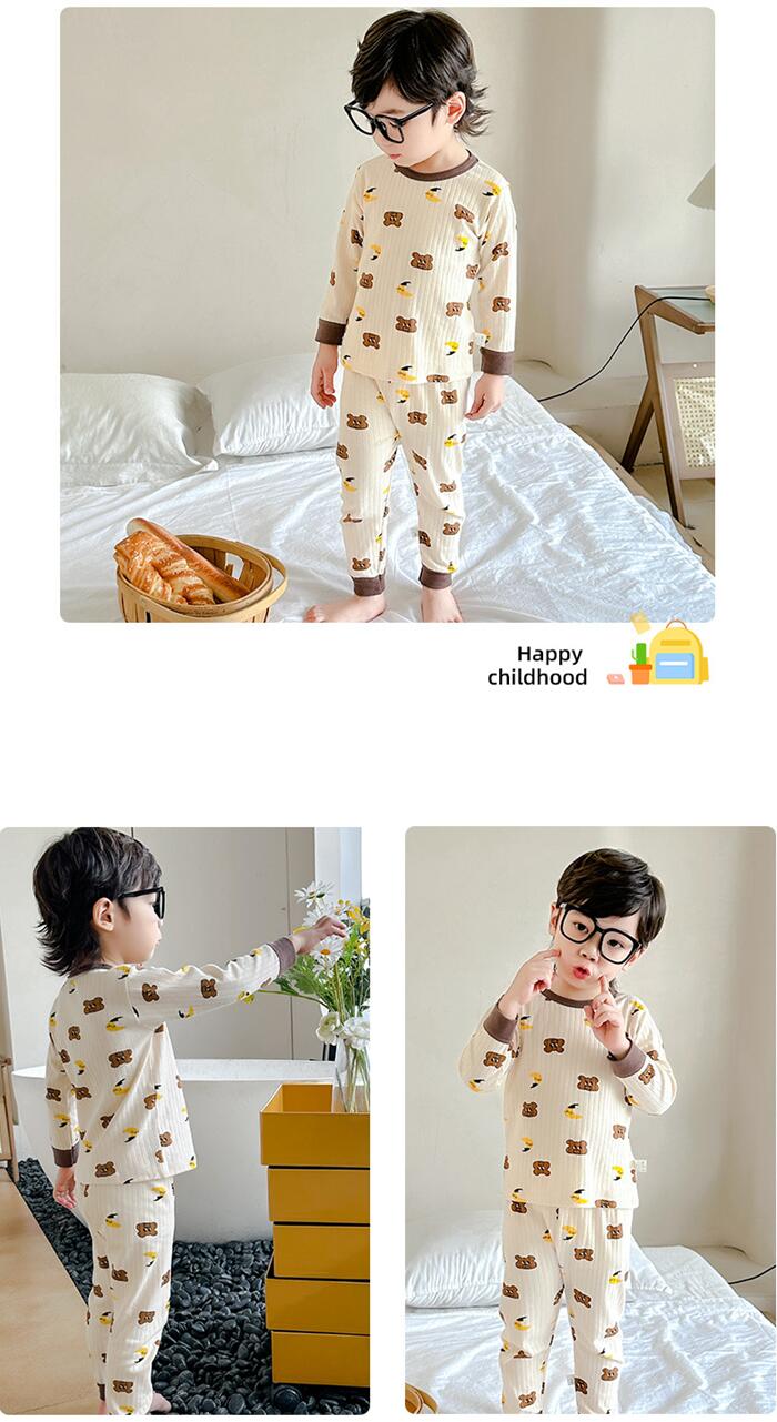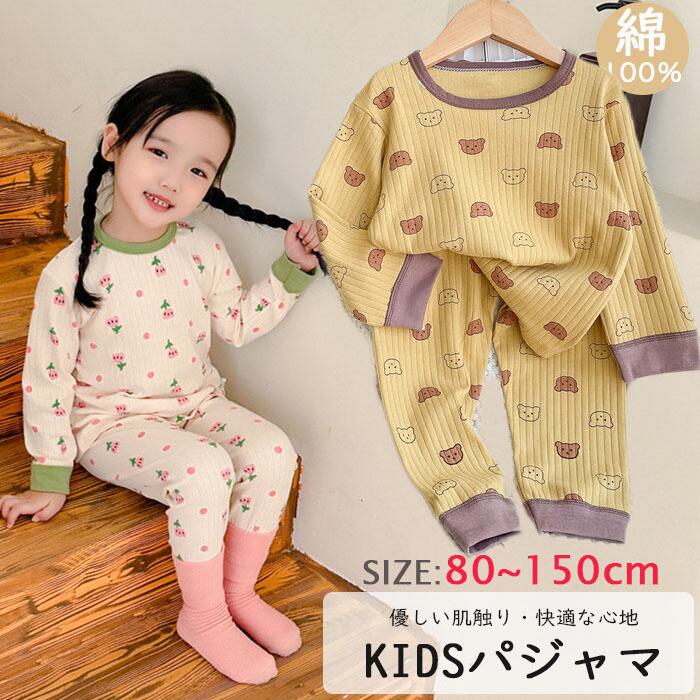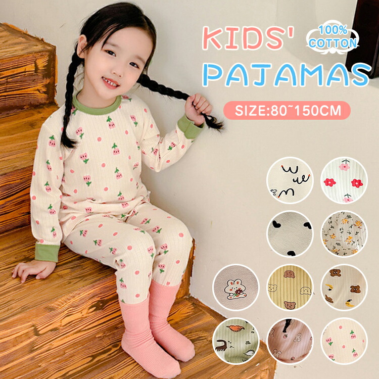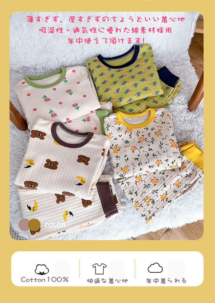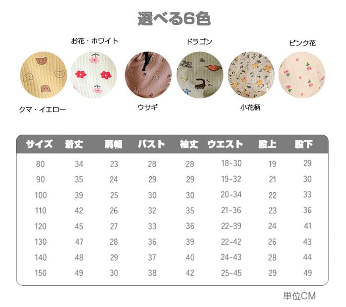 ベビー パジャマ ナイトウェア ルーム キッズ ベビー マタニティ 新作 クマ・イエロー お花・ホワイト ウサギ ドラゴン 小花柄 ピンク花 熊と月 80CM 90CM