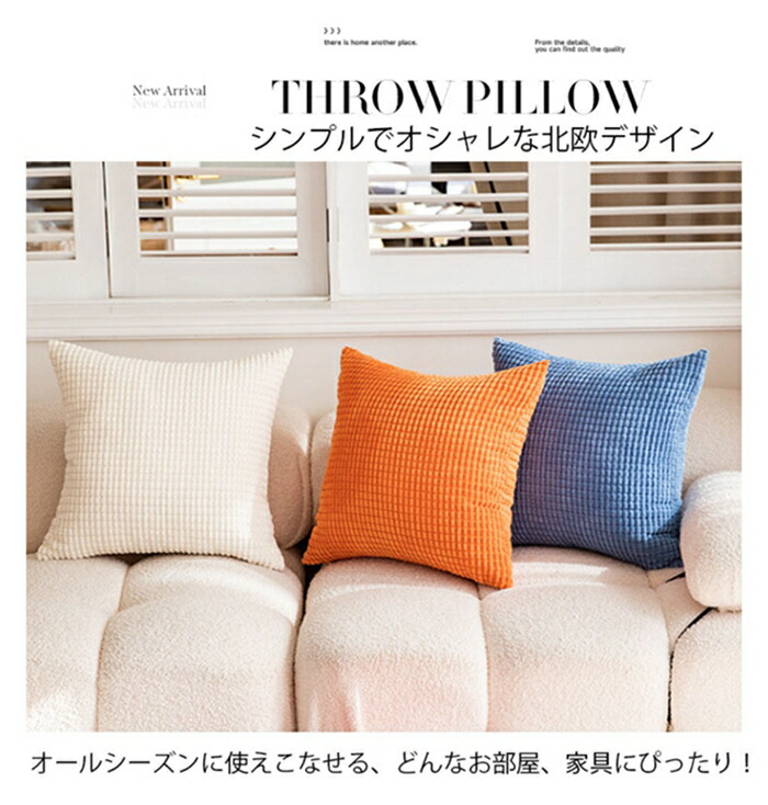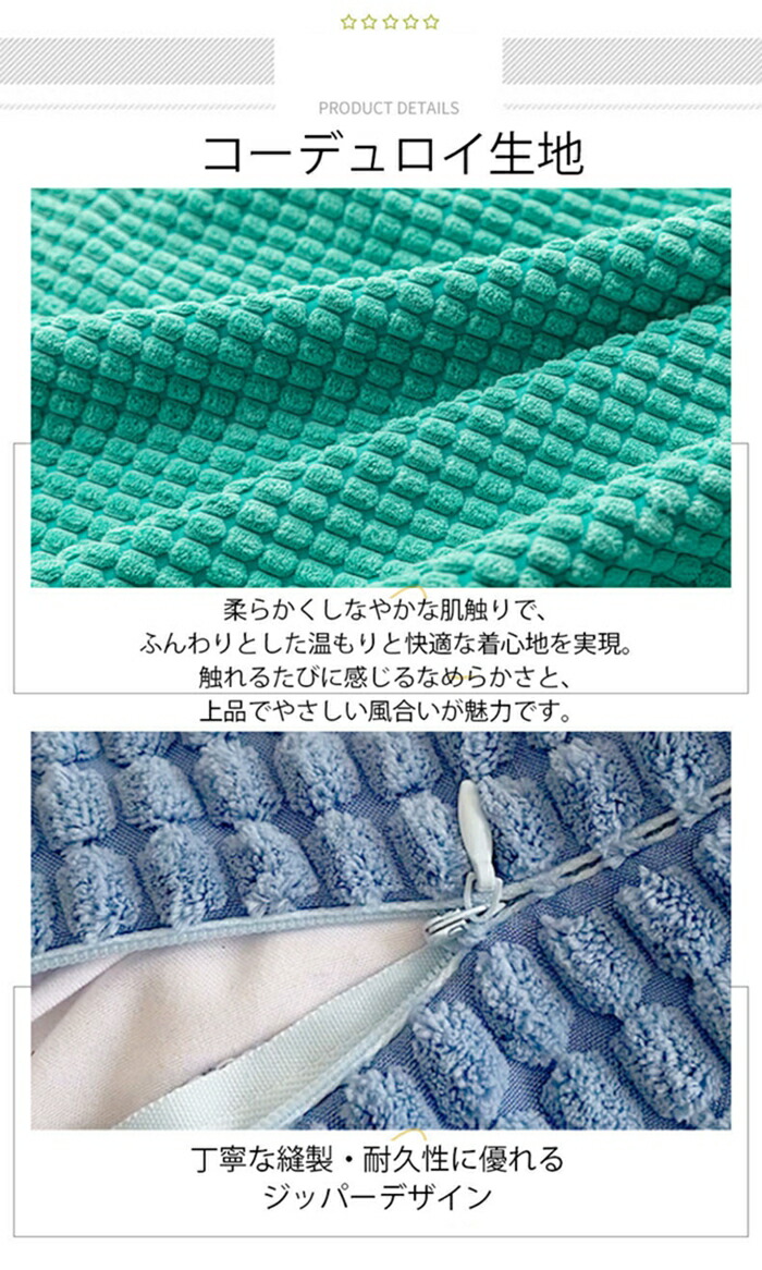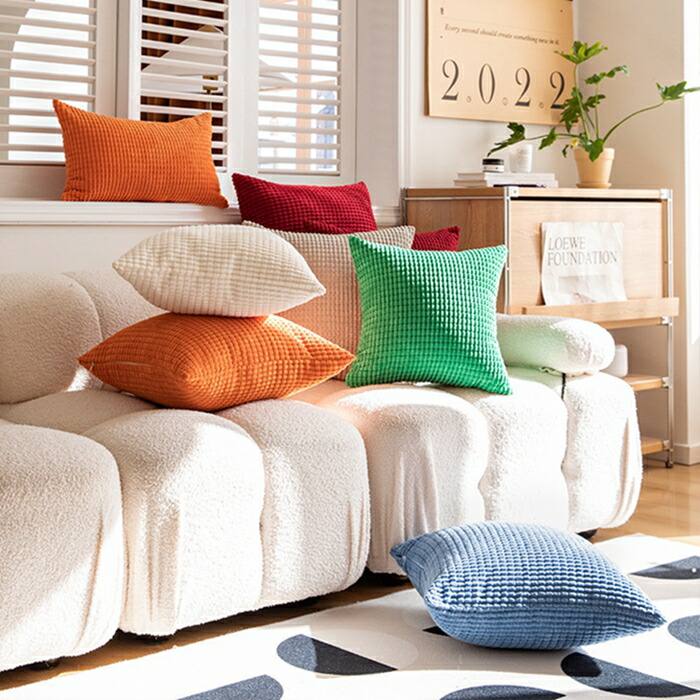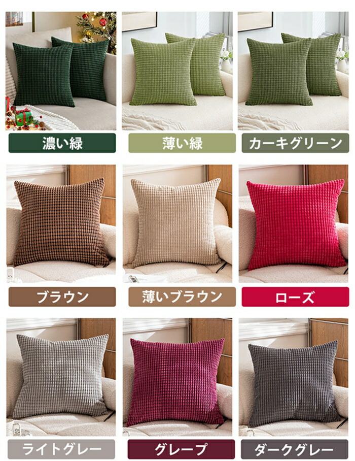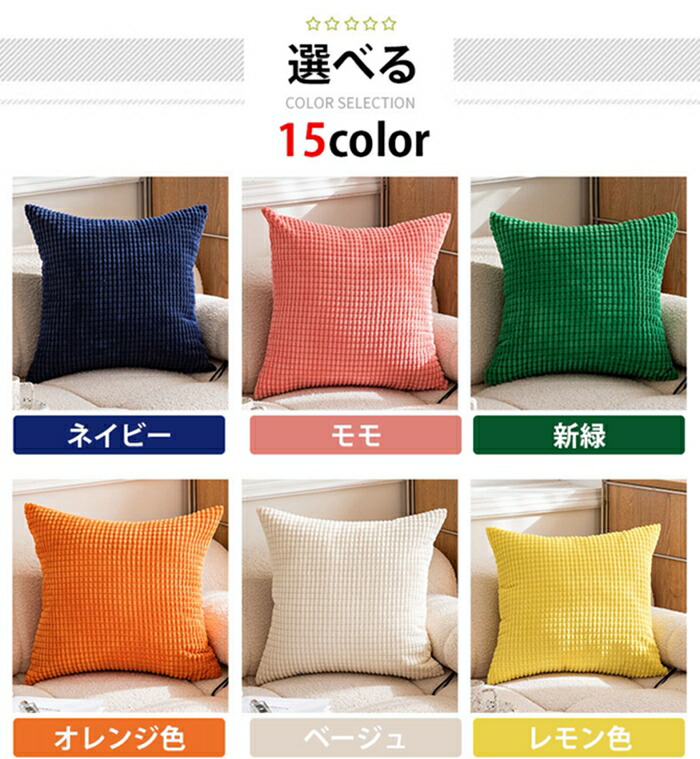 クッションカバー コーデュロイ生地 北 ネイビー モモ 新緑 オレンジ色 ベージュ レモン色 濃い緑 薄い緑 カーキグリーン ブラウン 薄いブラウン ローズ ライトグレー グレープ ダークグレー ブルー 30x50cm 40x40cm 45x45cm 50x50cm 55x55cm 60x60cm