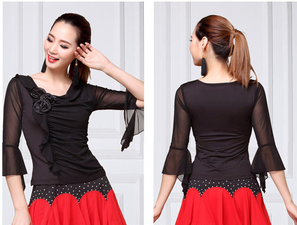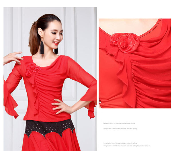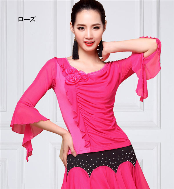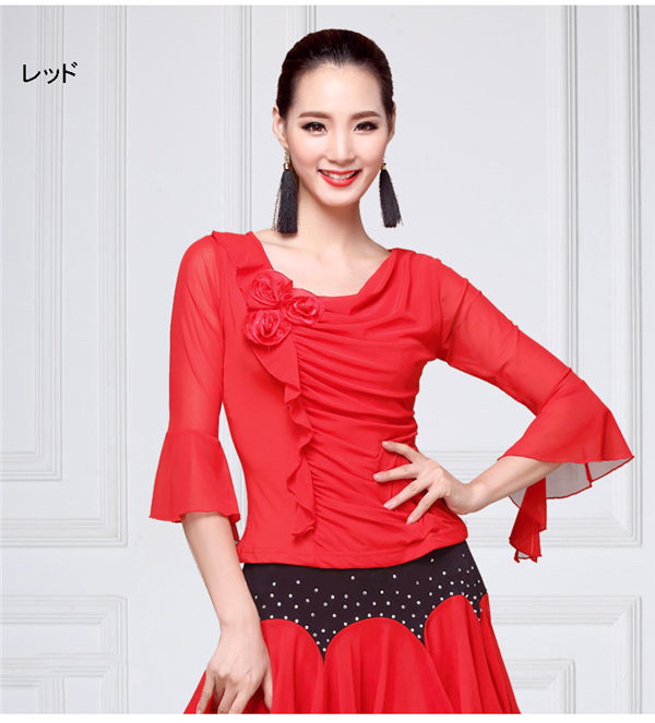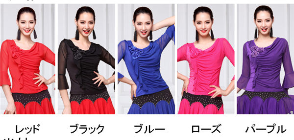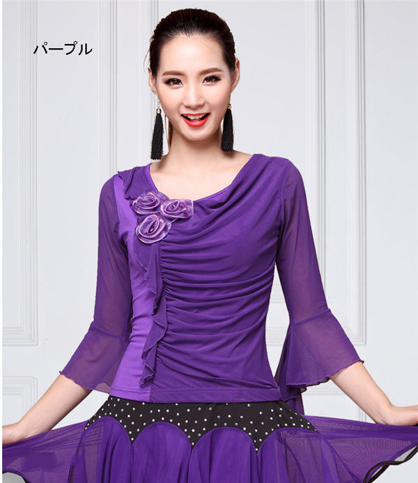 社交ダンス トップス 女性 社交ダンス スポーツ アウトドア 特集 ブラック ブルー レッド ローズ パープル M L 2L(XL) 3L(2XL) 4L(3XL)