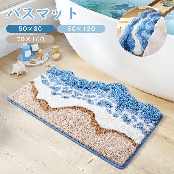 バスマット 波柄 ドアマット 室内 滑り止め 写真映え 洗える おしゃれ シンプル 水洗い トイレ 浴室 バスルーム リビング ベッドルーム 書斎 ベランダ かわいい 店舗 飲食店 新生活 オフィス