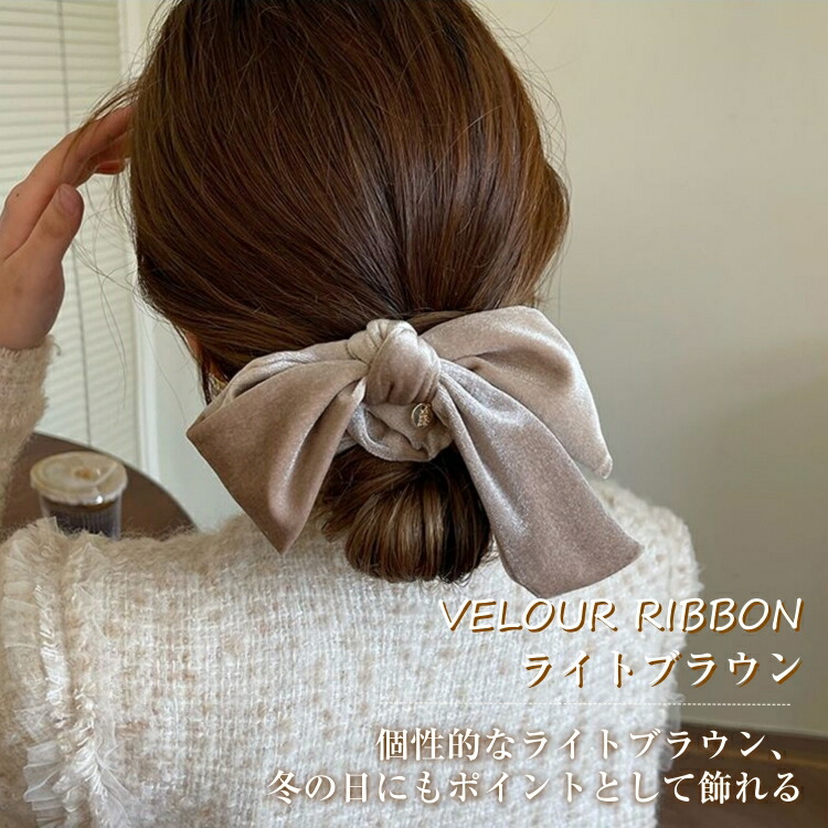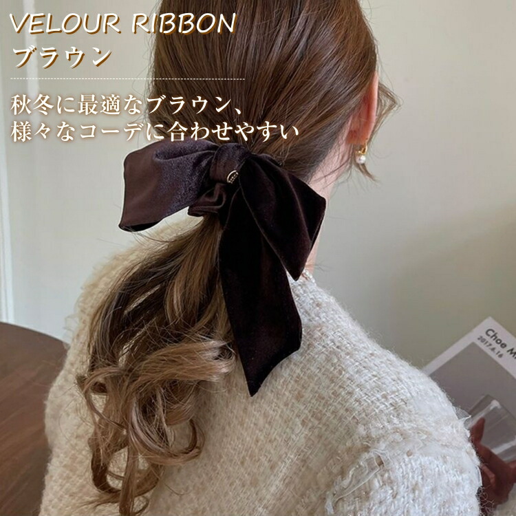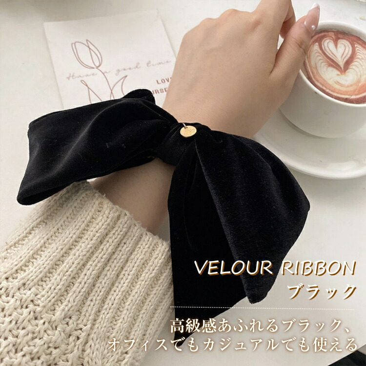 ベロアリボン リボン ヘアゴム ベロア ジュエリー アクセサリー 豊富な品揃え サテンリボンシュシュ ベロアリボンシュシュ ブラック ブラウン ライトブラウン キャラメル